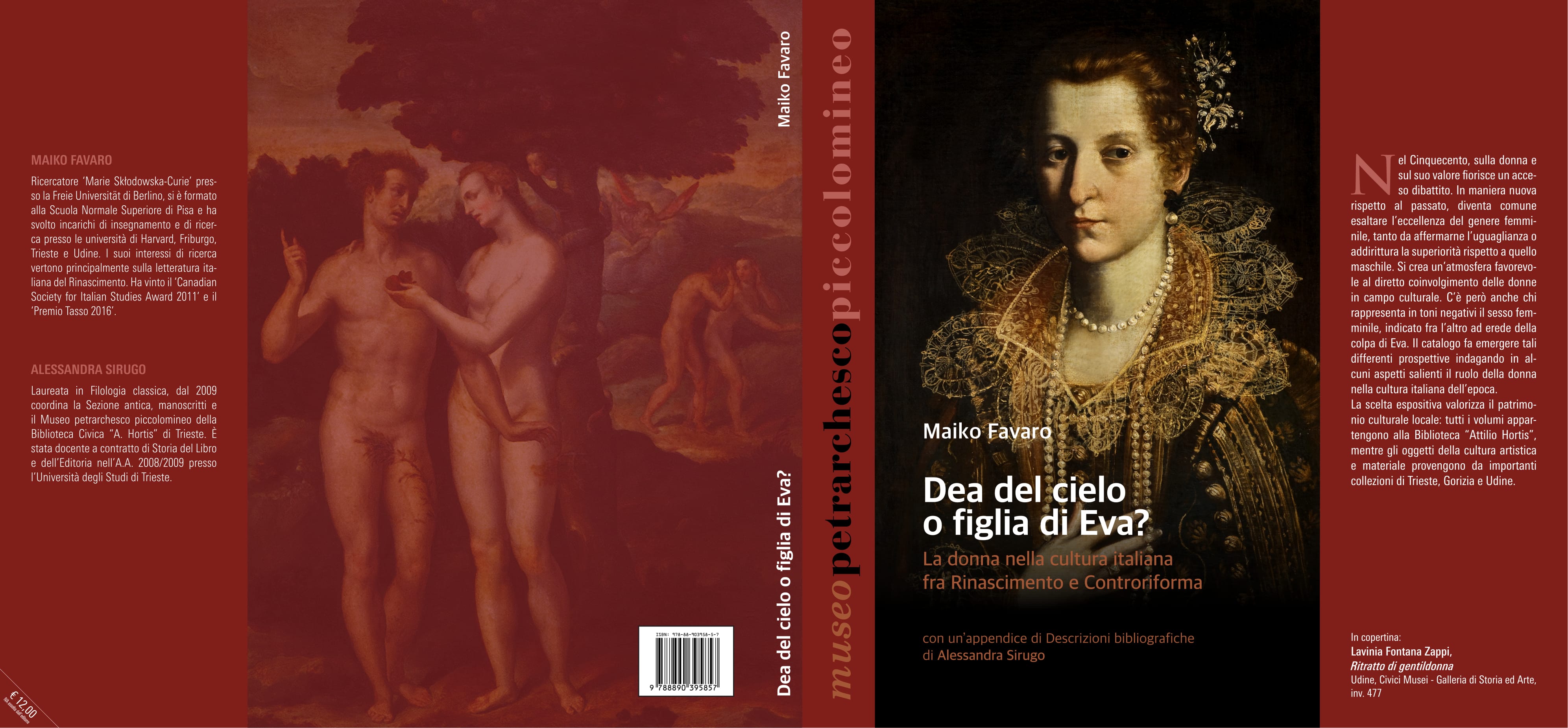 Catalogue of the exhibition: MAIKO FAVARO, Dea del cielo o figlia di Eva? La donna nella cultura italiana fra Rinascimento e Controriforma, Catalogo della mostra, con un’appendice di Descrizioni bibliografiche di Alessandra Sirugo, Trieste, [Comune di Trieste], 2017, ISBN: 9788890395857.