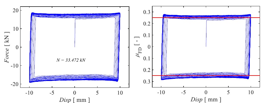 The new rocking damage-free steel column base with friction devices is experimentally tested and the experimental results are presented and analysed. Tests considering several displacement histories are conducted on a 2/3 scaled model of the column base within the laboratory of structural engineering of the University of Warwick. High-strength steel strands are used instead of steel bars in order to comply with the scaling equivalence. Preliminary tests on strands, bolts and friction devices are conducted in order to gain information on single components of the tests allowing a better calibration of the parameters. Coupon tests have been conducted in order to characterize the materials and to obtain stress-strain curves for the validation of the finite element models.