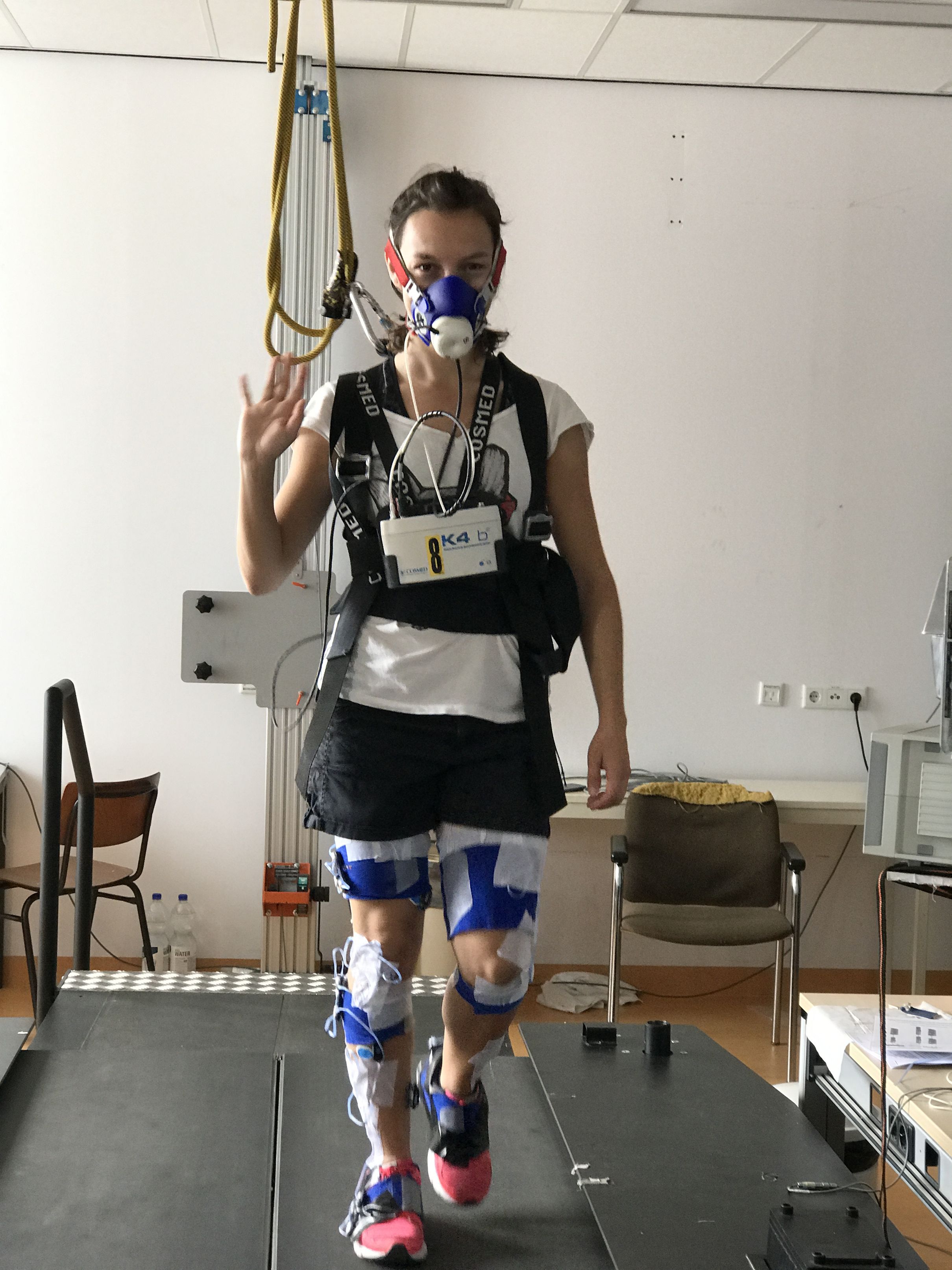 We have run very extensive experiments on the energetic cost, kinematics and mechanics of walking on a treadmill versus over ground, both in young adults and healthy elderly. These data are of very high quality and will lead to an article dealing with the finding that elderly walking on an instrumented treadmill initially use more oxygen than their healthy young peers. Second, these data will be used to estimate metabolic cost of walking of a detailed Optimal Control model of a human. This is still work in progress.