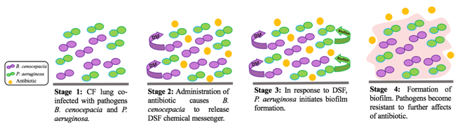 The overall aim of COMMANDEER was to build upon a very promising pilot study demonstrating that DSF analogue compounds interfere with cell-to-cell signalling processes in P. aeruginosa making them significantly more susceptible to antibiotic treatment. We have identified antagonists which can be co-administered with current antibiotics forming the basis of future therapies for CF. We carried out a deeper investigation of the relationship between structure and activity, ability to permeate biofilms and spectrum of activity of these analogues. A collaborative and multidisciplinary approach was used, incorporating chemical and biomolecular techniques, to generate a library of bioisosteric analogues of DSF, evaluate their ability to interfere with DSF cell-to-cell signalling processes in bacteria that colonize the CF lung and select those compounds which improve the efficacy of antibiotic treatment of bacterial infections.