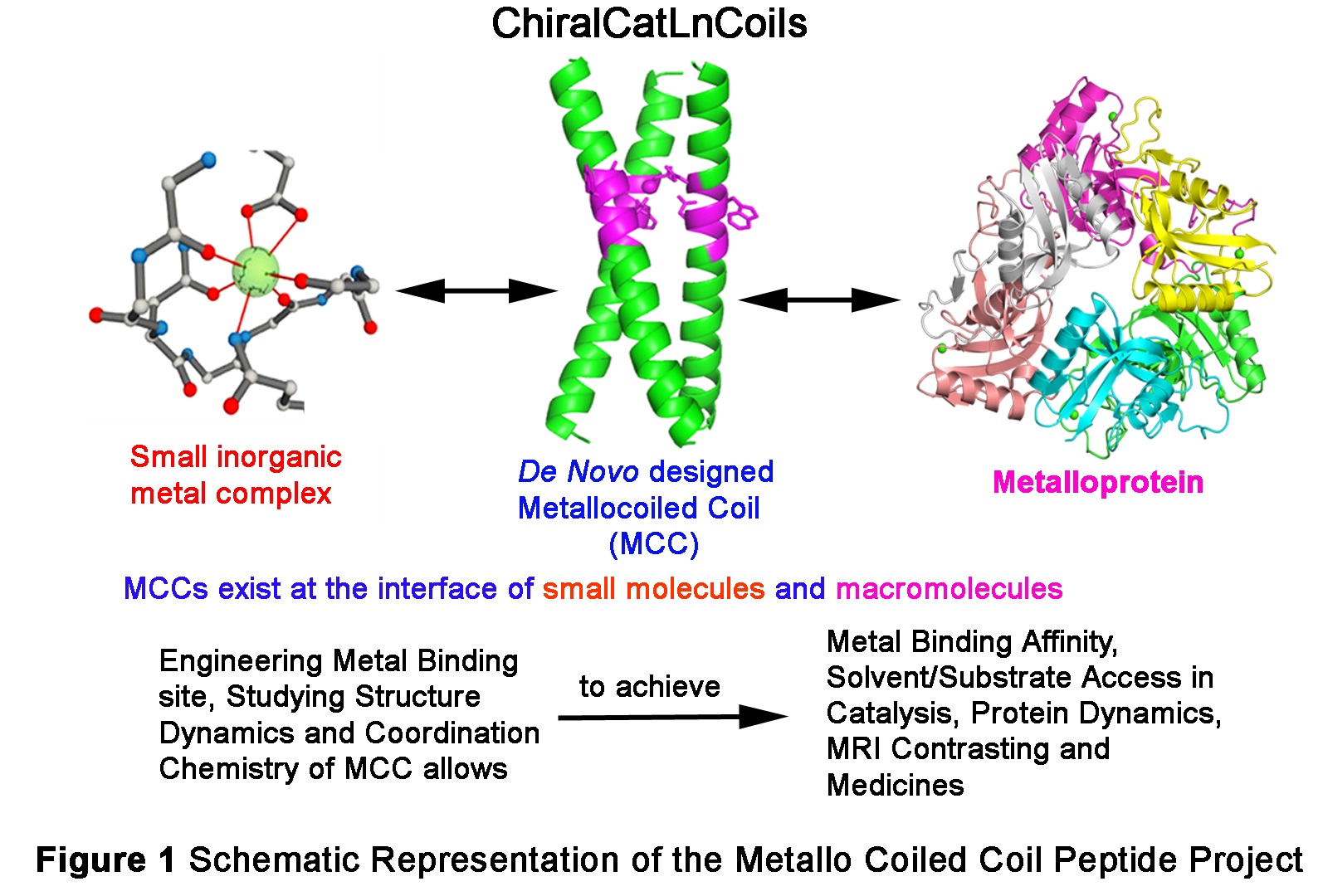 Our overreaching objective was to develop de novo designed CC peptides, to generate miniature protein scaffolds with well-defined secondary, tertiary and quaternary structure, and with which structure-function relationships can more readily be established. Then we have investigated their metal binding (a range of bio & eco relevant transition metals and lanthanides) capability and interrogated their coordination chemistry, and attempted to use the MCC as catalysts, for which a real academic and industrial need exists.