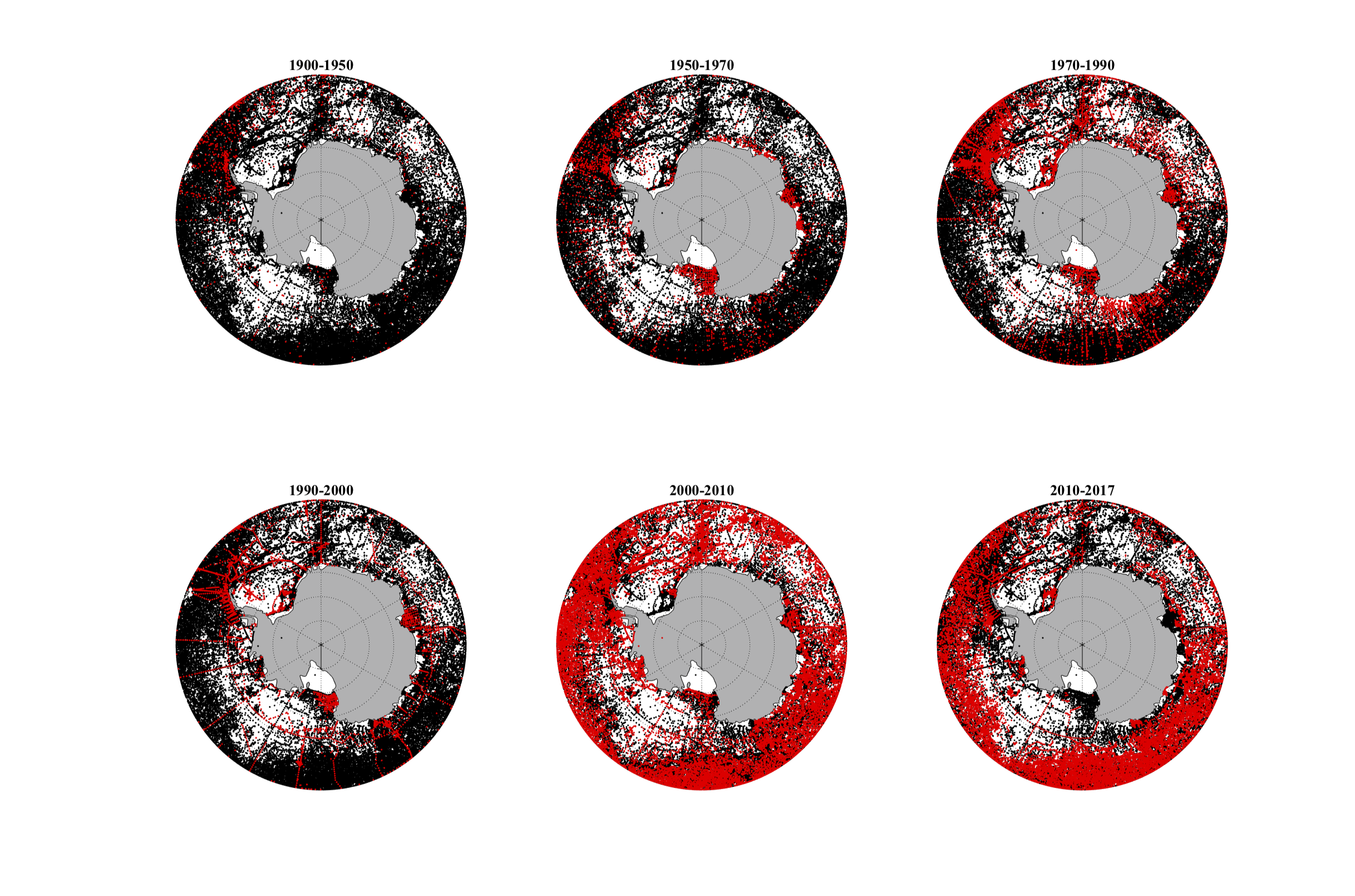 This data set has also been used to identify regions near Antarctic ice shelves and document any relationship between southward shift of warm water and increased ice shelf thinning.