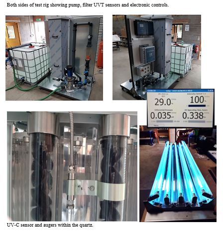 Having chosen the most practical design, based on commercial availability of constituent parts, we have a workable, large scale system. A self-cleaning quartz and UV system which efficiently controls bacteria and reduces COD levels. The system has been site tested for various flow rates. The target market is geared towards very turbid liquids being processed. There is a commercial decision in dealing high COD fluids as the addition of low levels of a chemical, Hydrogen Peroxide, reduces the number of catalytic units required. If one takes a long term view of investment then more equipment will pay off as H2O2 is not required.