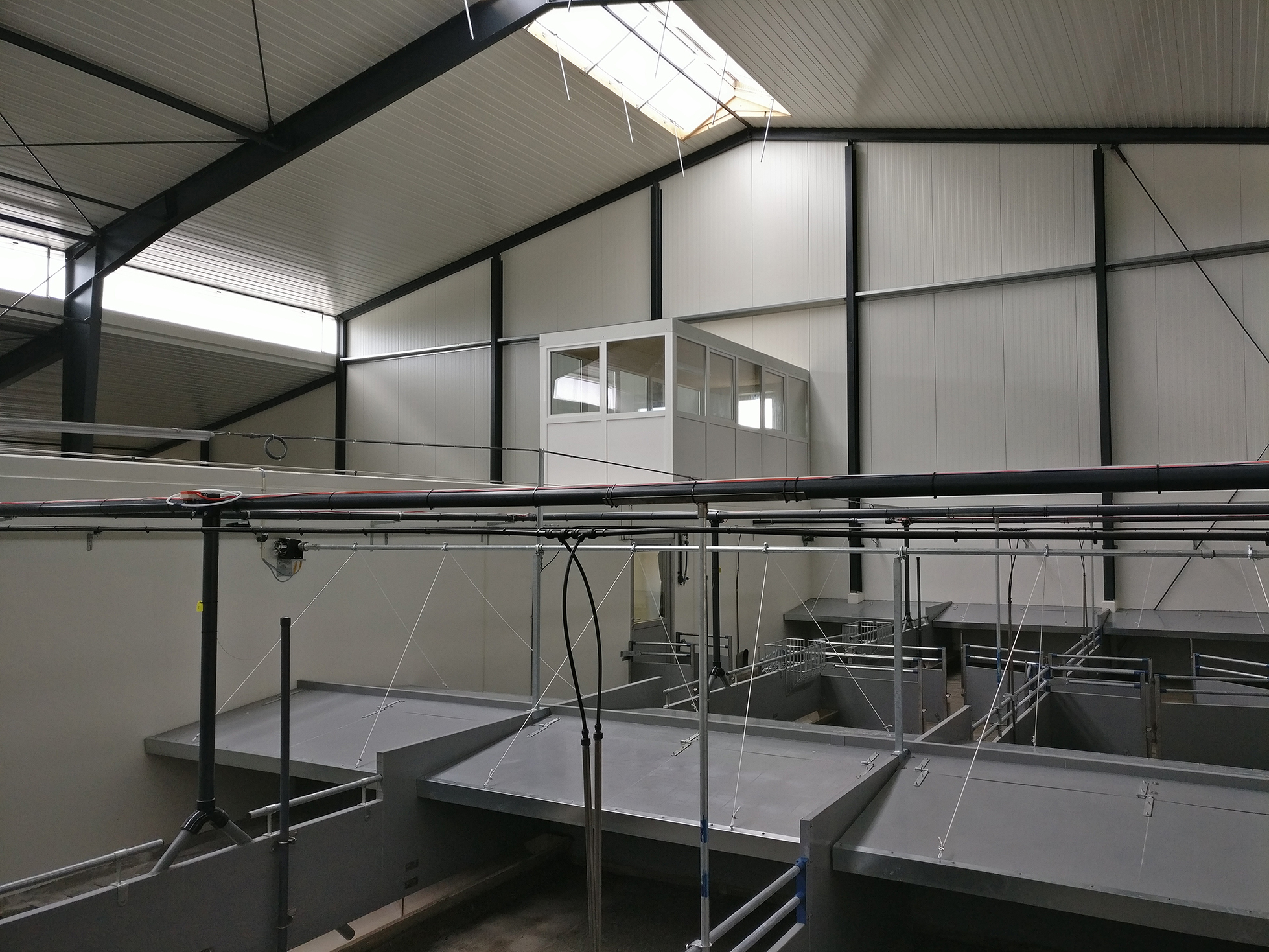 Construction of the 2 barns started in September 2016 and terminated in June 2017. The construction period required much time for the actual construction process and installation of technical equipment. It is important to anticipate potential conflicts in the location of various equipment, particularly in the case of high-technology systems like IntelliFarm. The most important processes and solutions that have been worked on include 9 new products, technologies and construction methods.