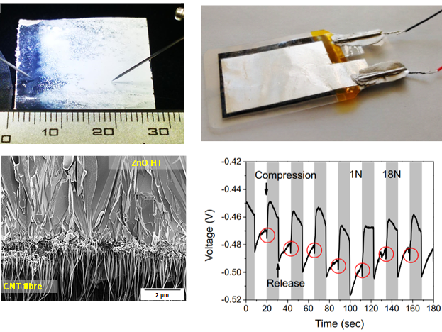The materials studied in the project consist of a strong, highly-conducting fabric of carbon nanotubes, which provides most of the mechanical reinforcement and charge collection. It is used as a scaffold to support a thin layer of an inorganic material that can convert external energy (e.g. light) into electrical energy.