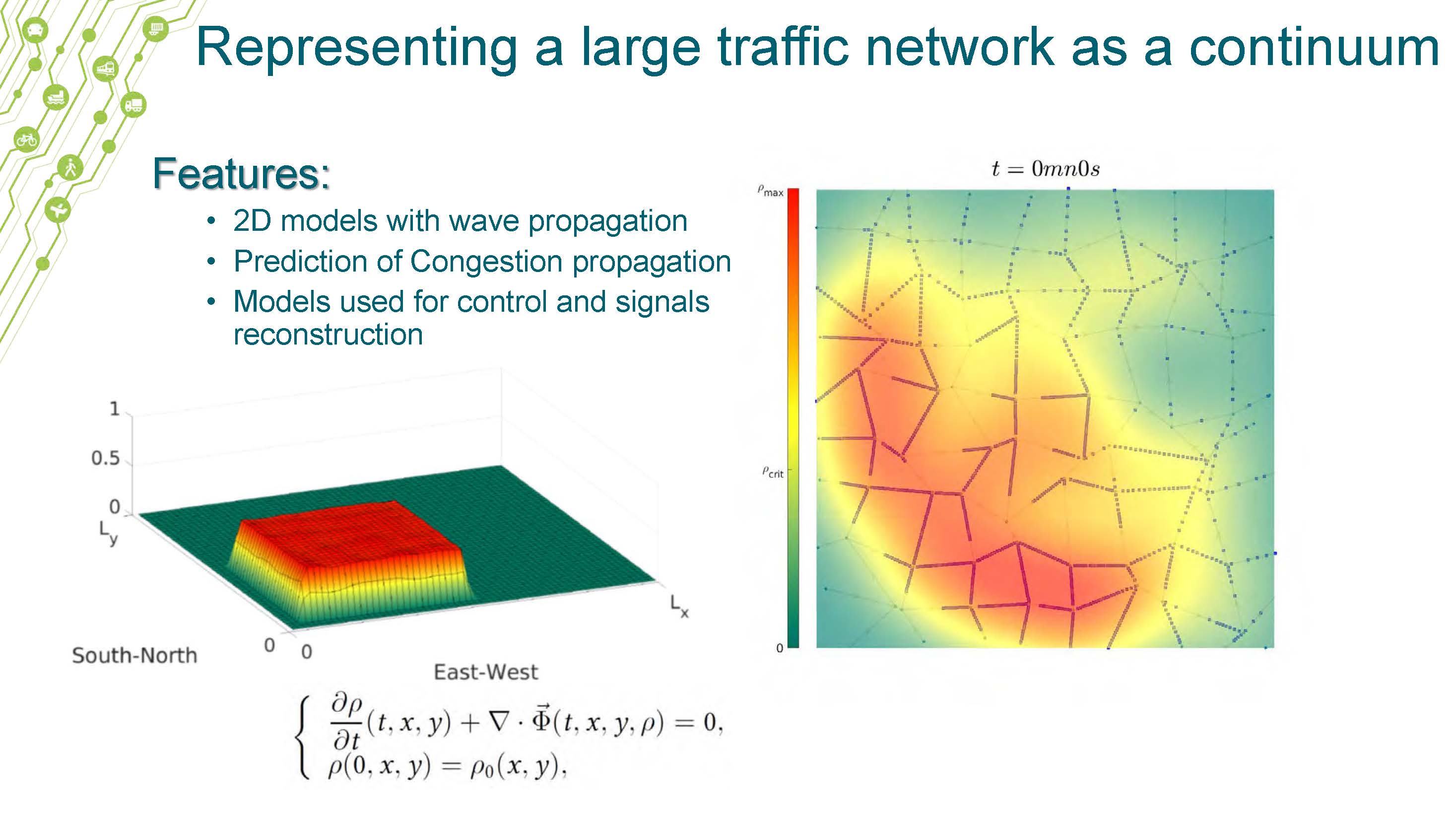 We have devised a new method for on-line vehicle density reconstruction in large-scale traffic networks. For that, we have used flows and FCD speed measurements to jointly reconstruct density and flow in the entire network. A sensor radar networks has been installed in the city of Grenoble. It allows us to validate the proposed methodology, and to provide public information for the analysis of the city traffic conditions (road occupancy, energy vehicle consumption, vehicle emissions, and pollution diffusion). A demonstrator of these results are implemented in the GTL-Ville platform http://gtlville.inrialpes.fr(opens in new window)