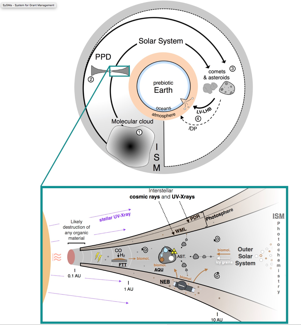 At the end of the project, we expect to be able to decipher the origin of organic matter in the solar system. We also develop a modeling approach for transport of organics in the solar system, which is fed with our experimental results. Such an approach has never be attempted before.