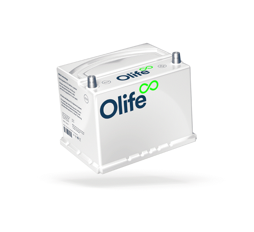 Olife has been developing a revolutionary lithium car starting battery that is a milestone in the evolution of the SLI batteries. It is the first full ecologic substitute to lead-acid batteries. It reduces hazardous waste by being completely lead-acid free and offers a significantly longer life span. It also reduces CO2 emissions and fuel consumption thanks to a lower weight and better usage in start-stop systems. Due to the technology, a high charge acceptance and negligible self-discharge characteristics there is less need for charging (saving car generator run-time) which further lowers energy consumption.