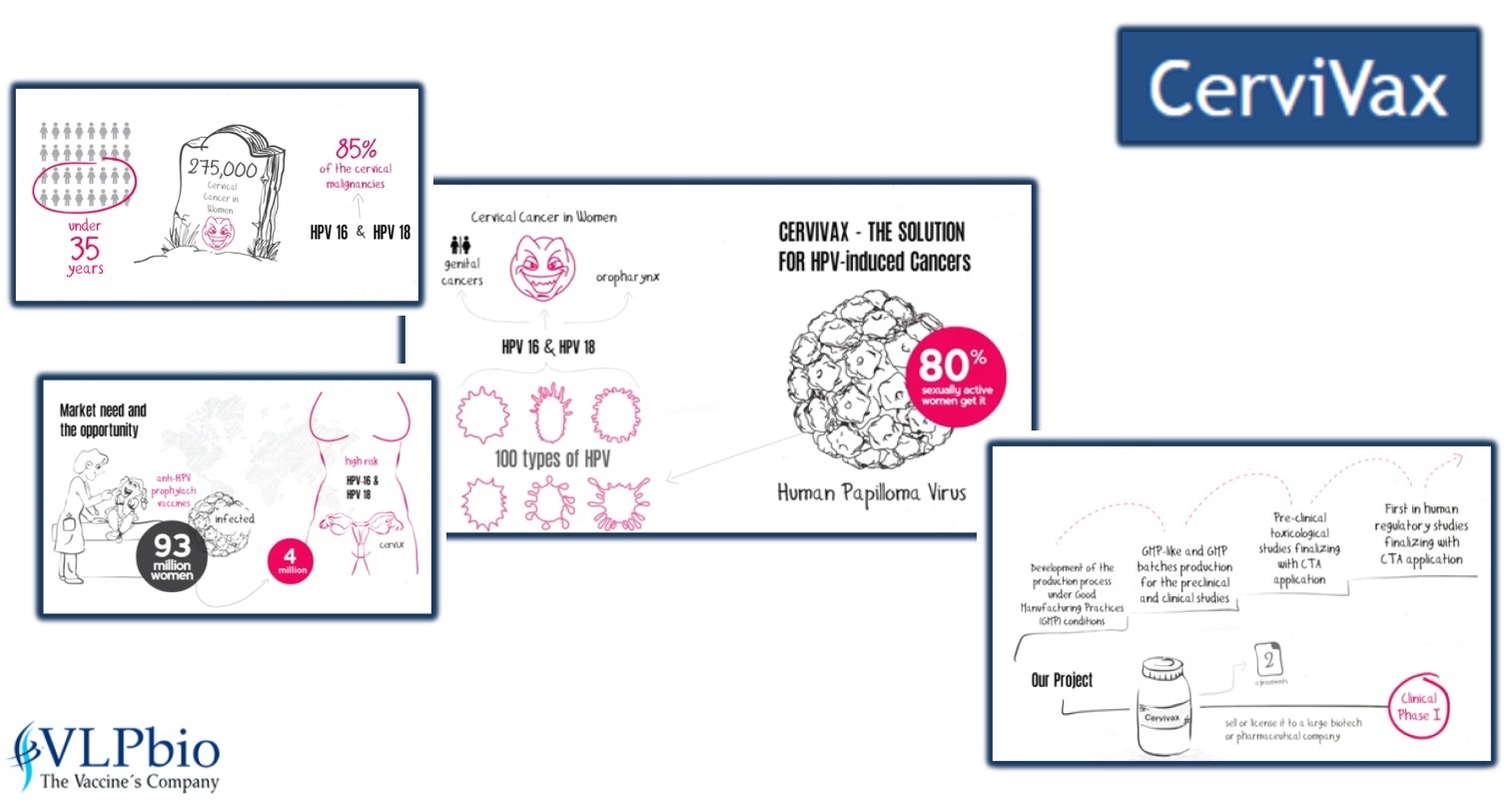 Our main product is Cervivax, an immunotherapeutic vaccine focused on the treatment of cervical dysplasia and infections caused by HPV-16 and HPV-18 (Human Papilloma Virus), which is responsible for most of the cases of cervical lesions detected all over the world. Although, there are prophylactic approaches to prevent viral infection, currently do not exist commercial therapeutic solutions to treat infections or lesions caused by the infection, other than surgery combined by chemotherapy. We position our product to cover this unmet need. We have an in vivo efficacy proof of concept of the product with excellent results, overpassing those of other therapies under development in terms of efficacy in absence of any adyuvant. The overall aim of the project is to bring CerviVax from the current status up to clinical-phase I, where we are aiming to license it to a large biotech or pharma company.