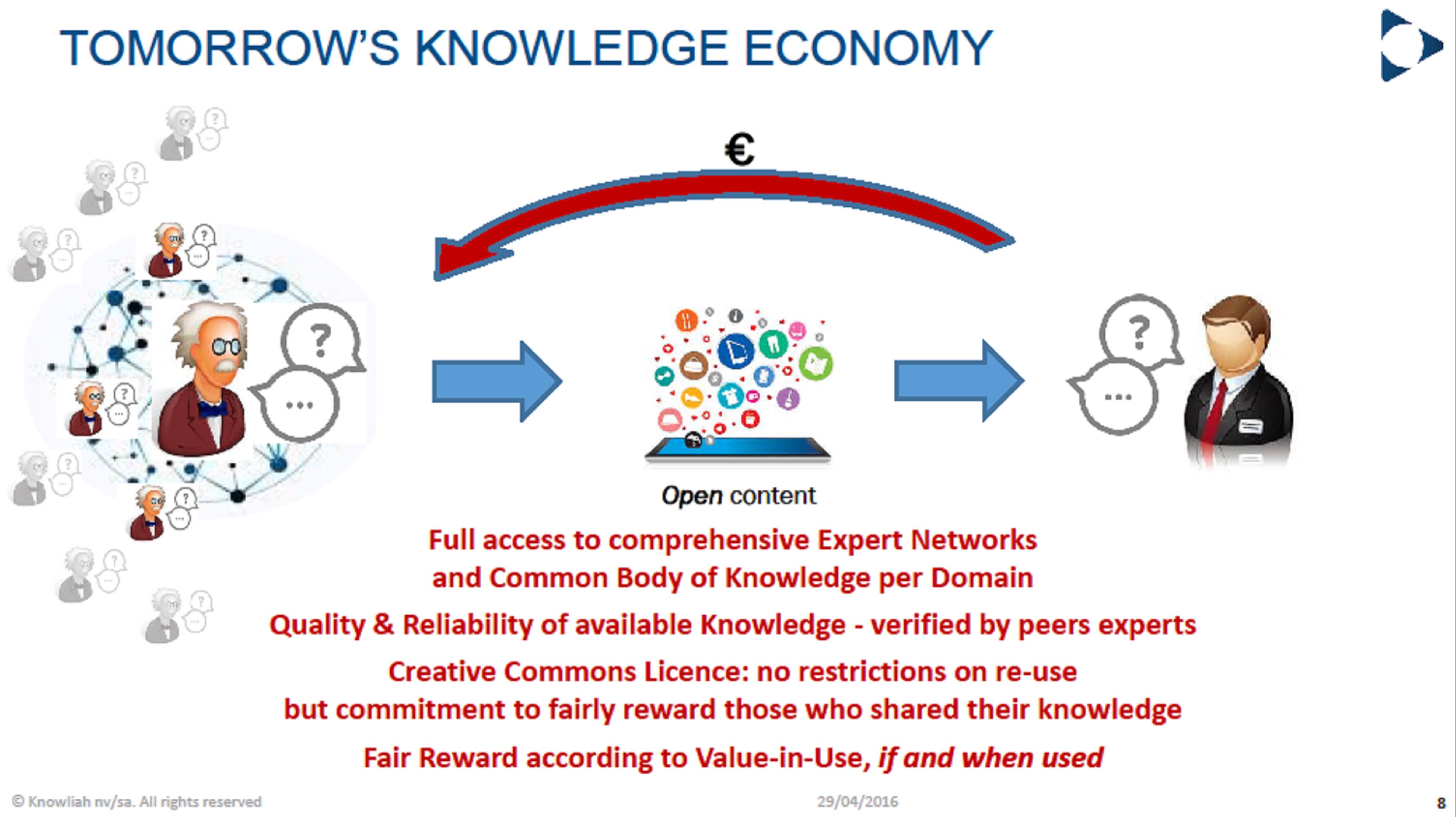 Our objective: Put Knowliah Community on the global map as the first online marketplace where knowledge is traded by in particular individuals and SME's, based on a novel method for determining its value that eliminates information asymmetries, all but eliminates IPR-related costs, and yet offers fair rewards and incentives for creativity and innovation.