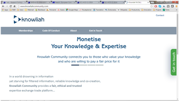 Opportunity: Operate a global online platform that tracks the production and use of knowledge so as to determine the real value of knowledge and hence provide a fair reward to its producers. This platform, called Knowliah Community (previously referred to as CHoKO, using the project's acronym), offers tangible incentives for creativity and innovation, and for sharing ideas with others in the expectation that they may turn them into revenues.
