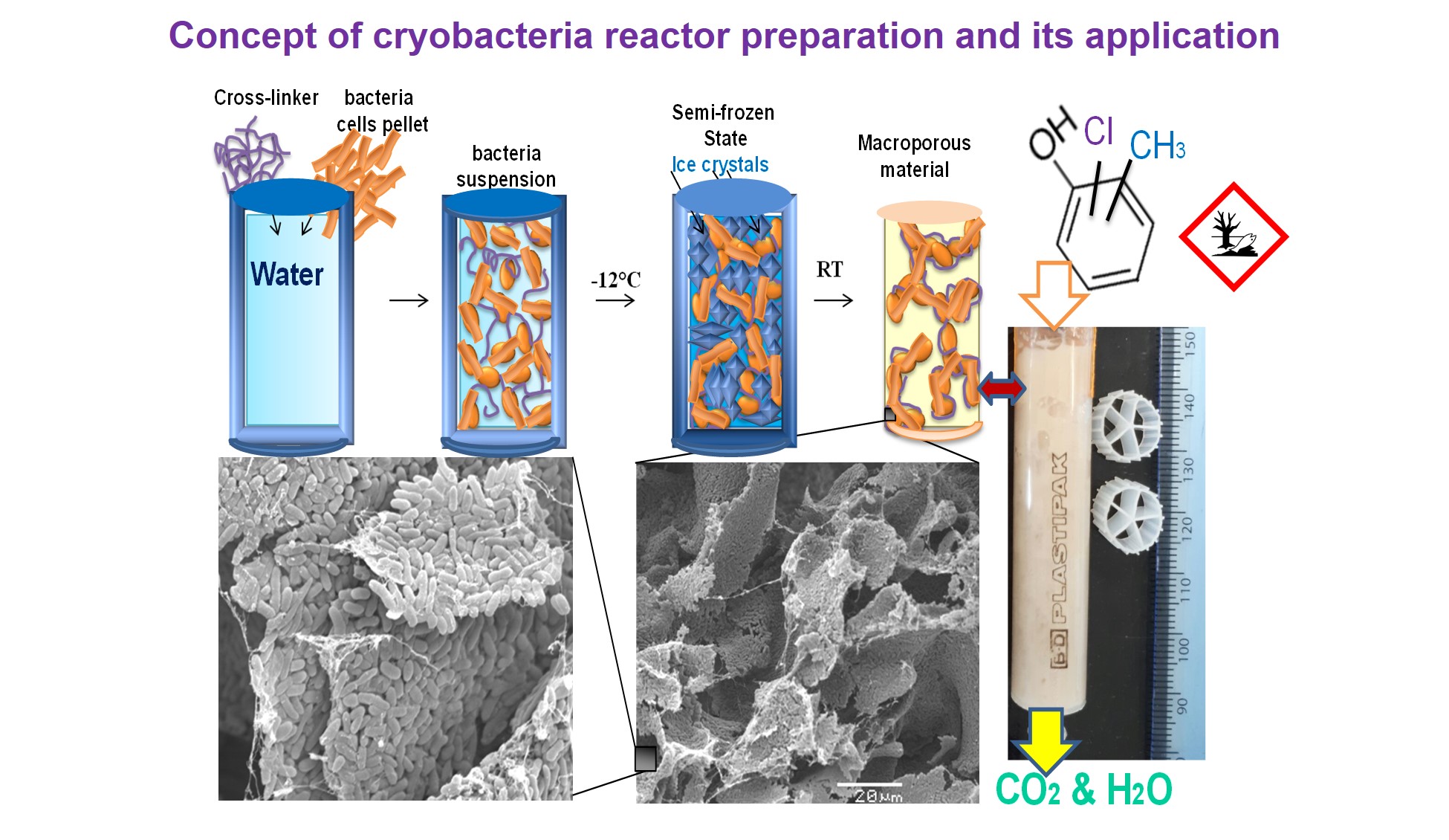 Periodic Reporting for period 1 - cryo-bacteria-reactor (Development of the flow through bioreactor of 3D-structured bacteria for biodegradation of aromatic chloroderivatives from contaminated water)