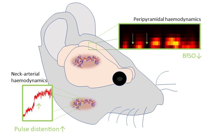 Serotonergic hallucinogens interact with a variety of different monoamine receptors (proteins that govern the communication patterns across neurons), yet their psychoactive effects are thought to be primarily mediated by serotonin (5-HT) 2A receptors. 5-HT2A receptors densely populate certain neurons within the cortex of the brain (particularly influencing so called pyramidal cells), but they can also be found widely across the vascular system. How neuronal and vascular 5-HT2A receptors orchestrate to give rise to the brain dynamics characteristic for these drugs, however, is still largely unknown. That most serotonergic hallucinogens (including LSD) tend to be highly promiscuous in their receptor binding preferences, adds another layer of complexity and renders any final appraisal of the mechanistic implications of 5-HT2A receptors difficult. Here, taking advantage of a recent development in drug design, we use the highly selective 5-HT2(A) agonist 25CN-NBOH in mice. We describe the drug as to the essentials of its behavioural and autonomic properties; apply pulse oximetry to measure drug induced blood flow changes in brain-imminent arteries; and follow up on peripyramidal haemodynamics and midlayer pyramidal cell activity by means of cutting-edge techniques of optogenetic brain imaging. The overall aim is to provide insights into the (neuro-)physiology of 5-HT2A activity, delineating a possible mechanism of action of serotonergic hallucinogens.