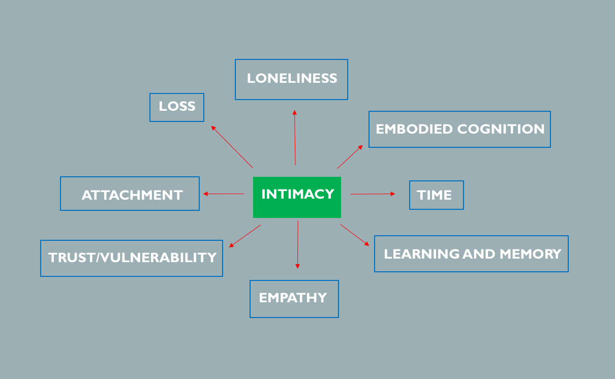 This approach led to the identification of salient themes such as: embodied cognition; loneliness and health; closeness and mutual knowledge; the relationship between intimacy and time, synchronicity; empathy; the relationship between intimacy and loss; learning and memory; risk, trust, prediction and decision making, styles of attachment and epigenetics, etc.