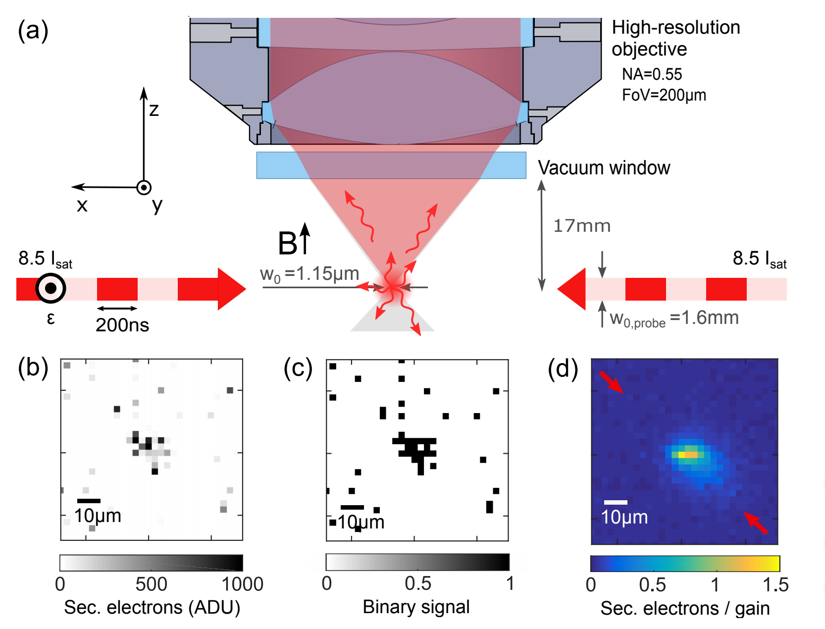 The second component of the work concerns single-particle resolved detection of correlations in cold atom systems. We developed a technique to image individual lithium atoms in fluorescence imaging in free space. This method is much simpler than previously developed schemes and enables new ways of probing quantum gases. In particular, single atoms can be imaged in a spin-resolved way without any confining potentials, such that single-particle detection in time-of-flight becomes possible. Many-body systems can thus be characterized via their spin-resolved momentum correlation functions. This work is published in PRA (Phys. Rev. A 97, 063613 (2018))
