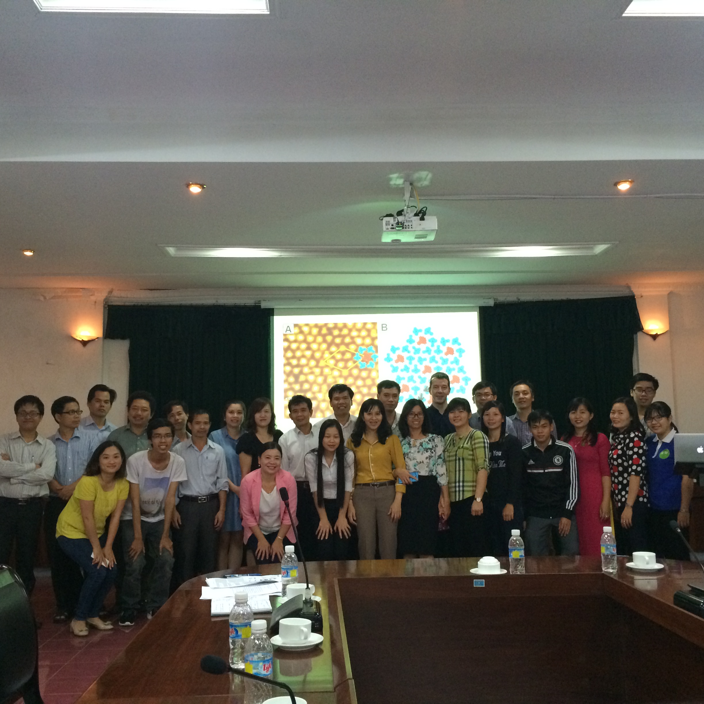 Giving lectures in the course “Surface chemistry at the nanoscale” to Master and PhD students in February 2017 at Chemistry department, Quy Nhon University, Vietnam where the fellow works as lecturer after finishing the project.