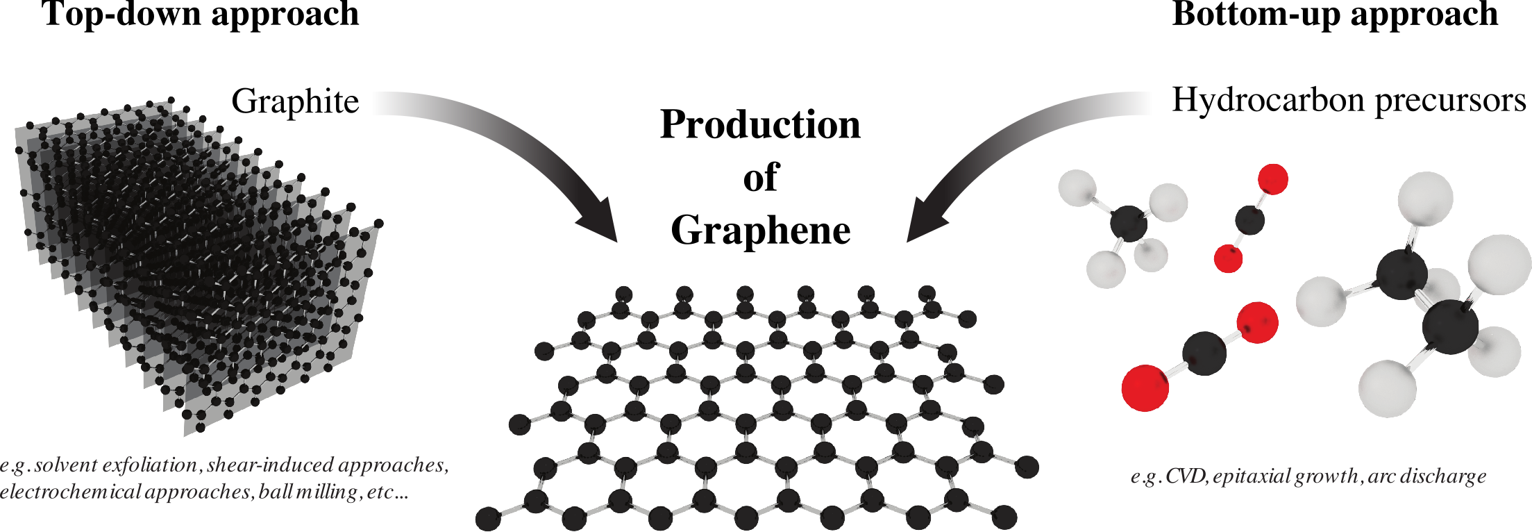 Top-down and Bottom-up routes for producing graphene, a two-dimensional material.