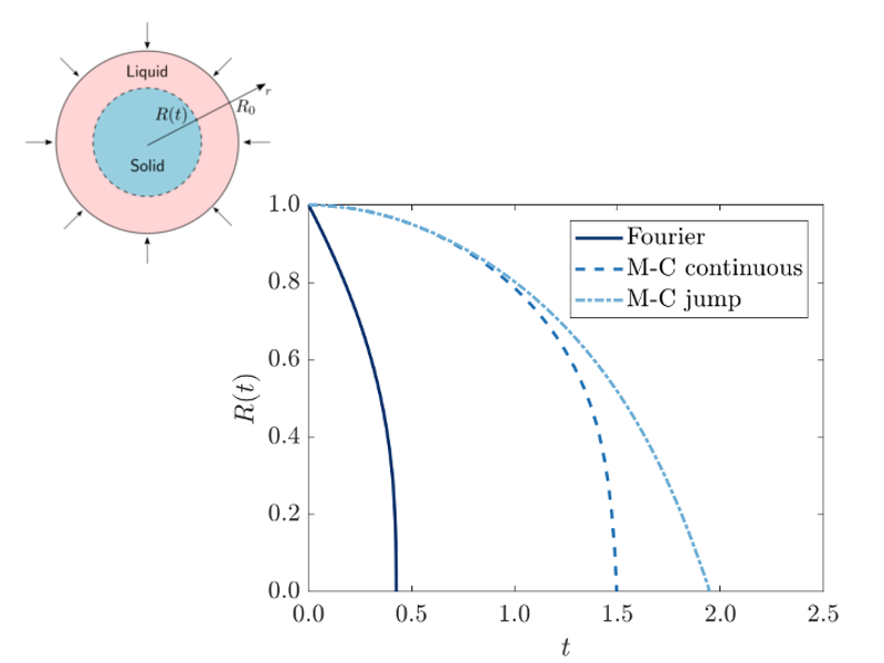 Important advances were also made in understanding nanoscale phase change. We carried out the first systematic analysis of a model of phase change based on the GK equation that does not make any assumptions about the solidification kinetics. We observed that non-classical modes of heat transport that are important on the nanoscale can substantially alter the kinetics of phase change in novel ways that had not been previously reported. Furthermore, this work adds much-need clarity to the issue of the correct choice of boundary conditions in models of nanoscale phase change and showed the wrong choice can lead to physically impossible results. The need to accurately predict how nanodevices respond to their thermal environment requires physically realistic models that obey fundamental physical laws, and this project successfully established a framework for constructing such models that can be used by engineers and other researchers working in this area.