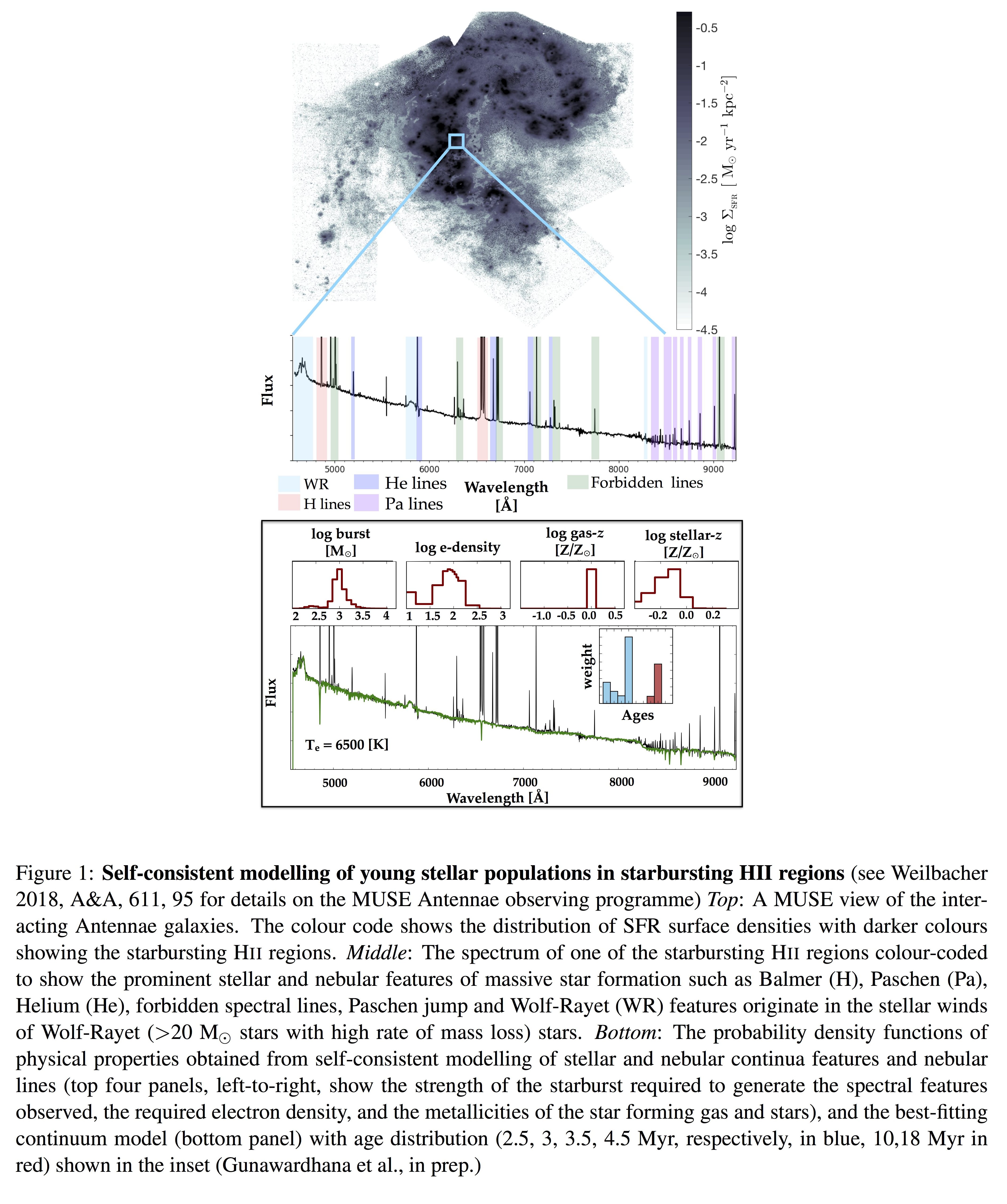 The data for the project was drawn from the Antennae observing programme of the MUSE (Multi Unit Spectroscopic Explorer) consortium as well as from other European and Australasian-led surveys such as GAMA (Galaxy And Mass Assembly) and SAMI (Sydney-AAO Multi-Object IFU). One of the primary outcomes of the project is that we have developed a comprehensive and self-consistent suit of high-resolution models specifically tailored to fit spectroscopic observations of starbursting regions. The model fitting process is designed to use a wide range of information in a given spectrum of a starbursting region to simultaneously converge on the best-fitting physical parameters, such as star formation history, the metallicity of gas and stars, the age of the dominant young and old stellar populations, and electron densities and temperatures.