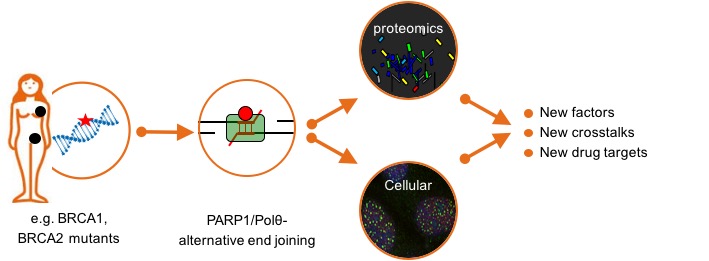 One of the objectives of our ERC StG was to understand the mechanisms of action of polymerase theta and the underlying reason for the synthetic lethality with HR. We have solved this question, by showing the Polθ repairs DSB during mitosis and that this function is essential for the survival of HR deficient cells. More generally, in our ERC StG project, we aimed at discovering additional DNA repair related vulnerabilities of HR-deficient tumors. We discovered new targetable synthetic lethality with HR-defect. One of our studies unveils nuclear NAD+-mediated DAN repair as a novel vulnerability of BRCA1/2-mutated cancer cells and its potential as druggable signaling pathway to tackle PARPi resistance. In another work, we discovered that BRCA1/2-mutated tumors show frequent events of nuclear envelop rupture and that inhibiting the repair of these ruptures kills BRCA1/2-mutated cells. This constitutes a novel and targetable vulnerability, which we termed NE vulnerability.