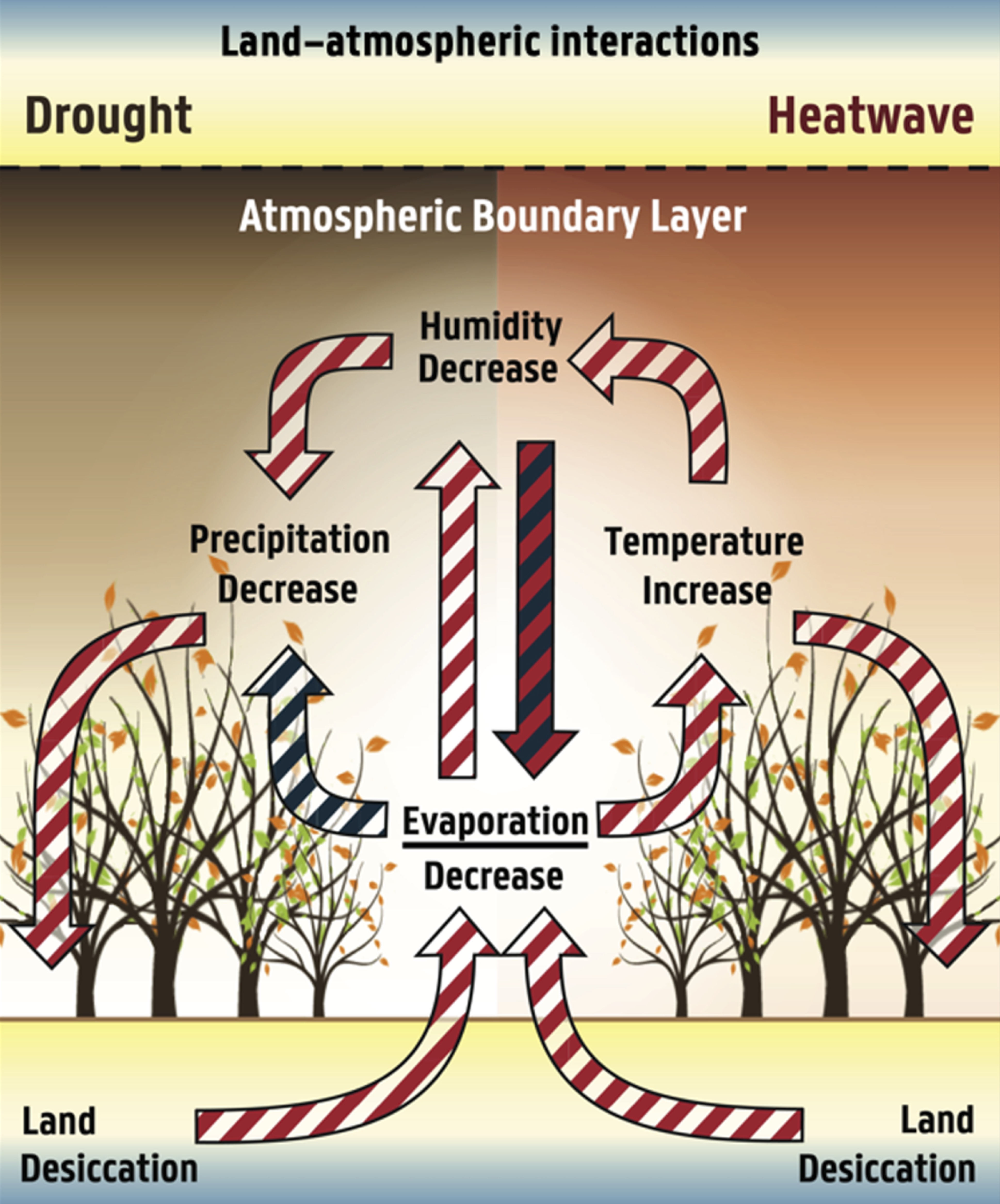 The overarching goal of DRY–2–DRY was to help mitigate the devastating impacts of droughts and heatwaves by furthering our understanding of the physical processes triggering their intensification and propagation. The main hypothesis was that, as a soil drought strikes, the reduced evaporation contributes to the drying and warming of the air. This leads to further expansion and concatenation of drought and heatwave conditions in the downwind direction. This implies that droughts and heatwaves can 'self-propagate' and 'self-intensify'. Just like a wildfire. Along the journey to test this hypothesis, we unravelled the effect of vegetation and soil moisture on the circulation of heat and moisture in the planet, and ultimately on temperature and precipitation. The potential of land cover change and management as a climate adaptation and mitigation strategy was also explored.