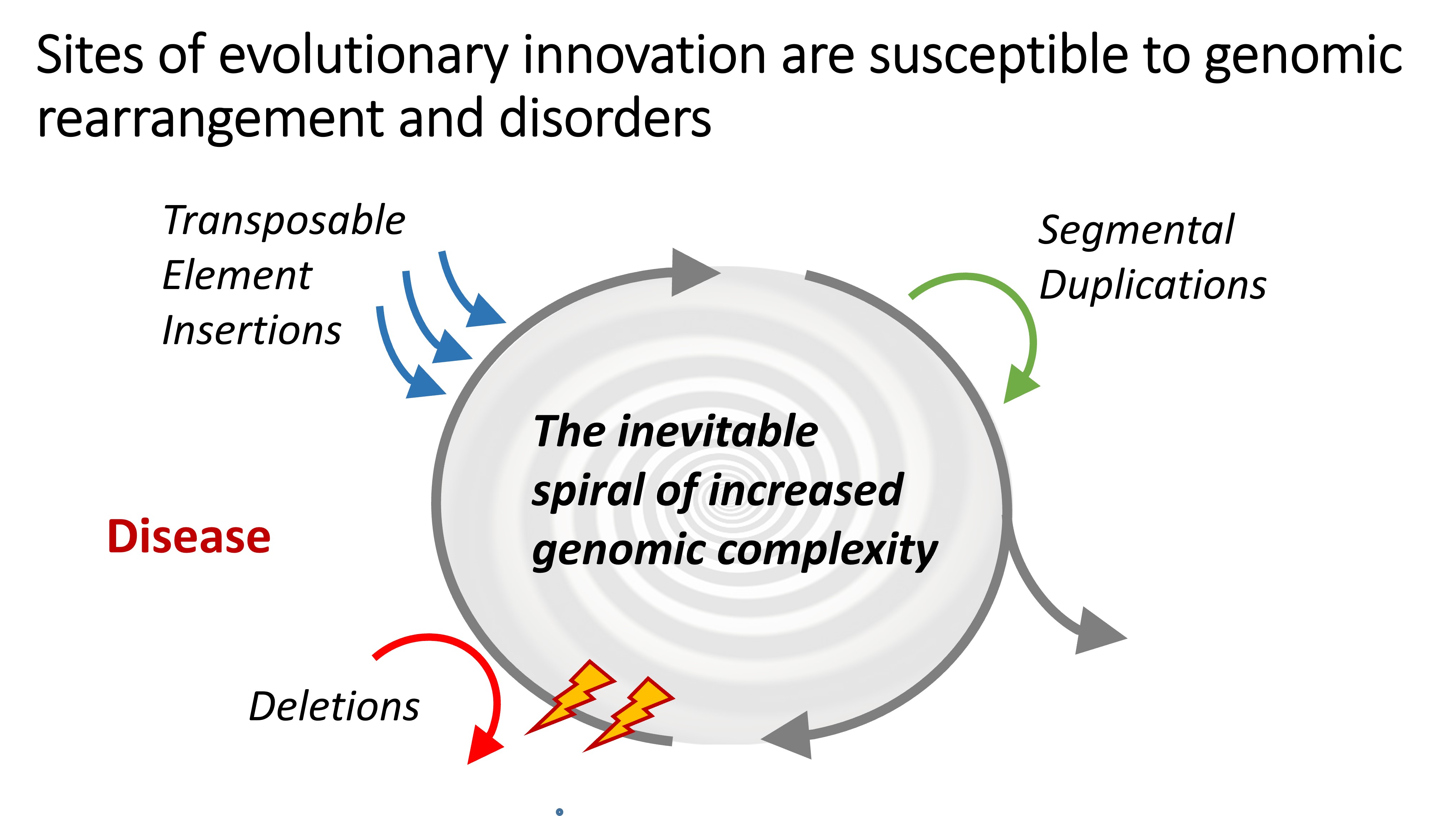 We have become particularly interested in primate-specific TE insertions in genetic loci associated with human neurological diseases and have engaged in a number of collaborations to study their potential impact on the susceptibility of these diseases. We applied CRISPR/Cas9 to genetically delete or regulate specific TEs from our genome to assess their impact on gene regulating by analyzing the resulting changes on both epigenetic and transcriptomic level. Most of the analysis was done in cortical organoids to obtain a clear view of how the TE insertion has affected neuronal gene expression when it inserted in the locus at some point during primate evolution. In our publication (Van Bree et al., 2022) in Genome Research, we revealed that numerous SVA insertions, which are fixed in the human population, can exist in structurally different forms in the population. These different polymorphisms can have different effects on genes nearby, genes that are sometimes associated with increased risk for human diseases through GWAS. Because often the causal factor in these disease associeated loci remains unknown, our study puts forward polymorphisms in TEs such as SVAs as potential causal factors that can have a differential effect on genes nearby in different individuals, hence providing a way in which a disease associated gene in one individual may be under a different influence of the SVA insertion than another individual. This provides an explanation for the observed but poorly understood variability of susceptibility to many human neurodegenerative diseases. This study is the first to show that this is the case and has contributed in bringen the attention to the repetitive part of our DNA in search for causal susceptibility factors.