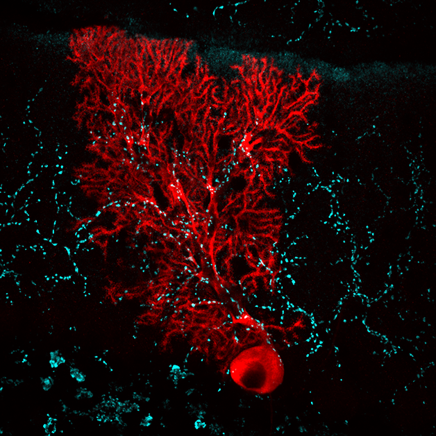 The originality of our approach is to dissect the brain at the molecular level to determine the constituents of each type of synapses established on a single neuronal type. For this we use sophisticated methods that combine the use of genetically modified mice with biochemistry and molecular biology techniques. Our studies have shown that there are specific constituents controlling the formation of each type of synapses established on a given neuronal target, the Purkinje cell. These results support the existence of a "molecular barcode" defining the identity of each type of synapse in the mammalian brain. Our work has identified a molecular combination, made of secreted proteins, that constitutes this barcode for two types of synapses formed on the Purkinje cell. We have also shown that contrary to previous belief, this code is not already generated when neurons differentiate but is acquired step-by-step during postnatal development. We haveperformed functional studies using neuron-specific Crispr/Cas9 loss of function experiments to show that this code is made of partially non redundant signaling pathways (Paul, Sigoillot et al.
