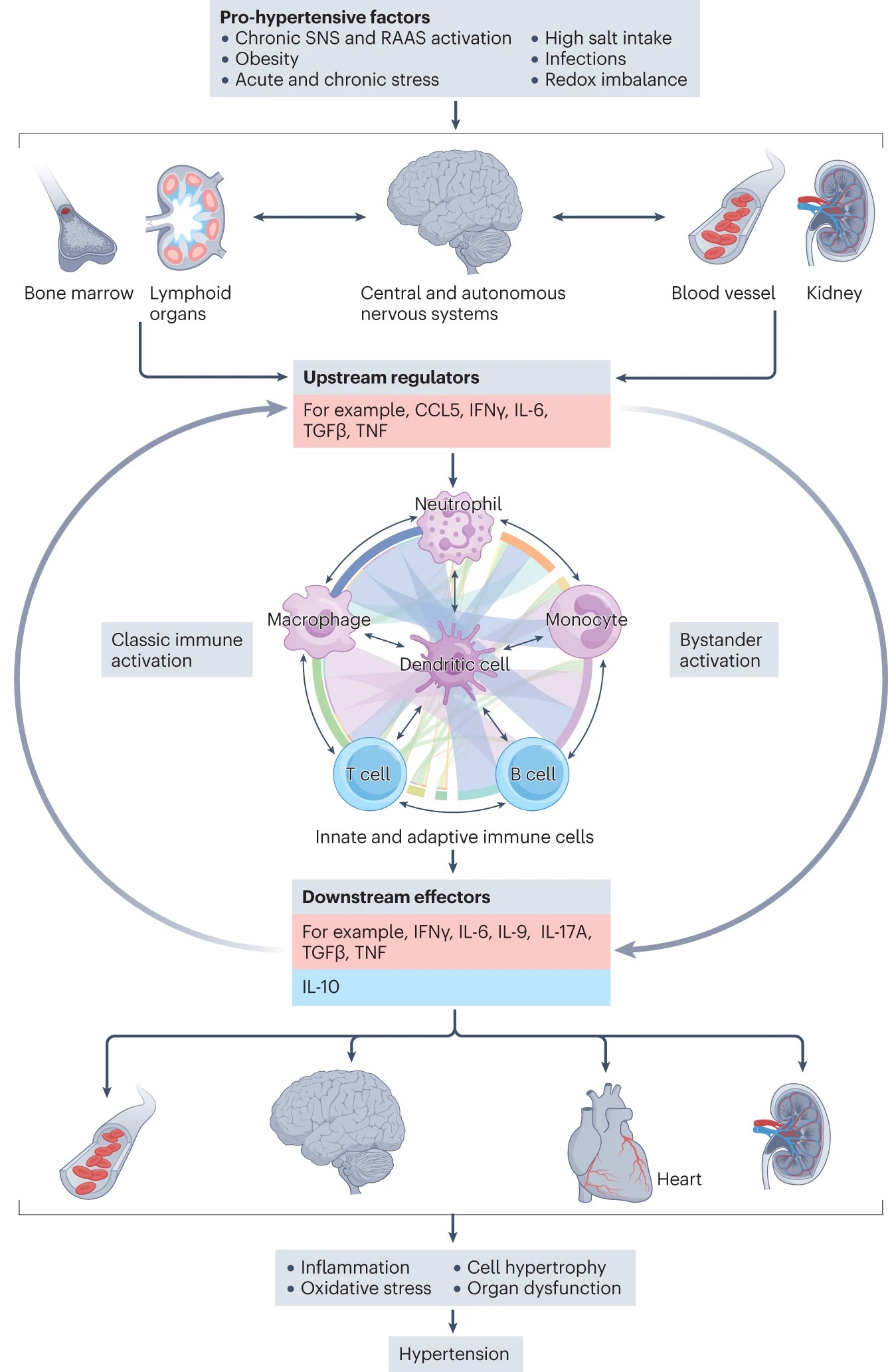An additional breakthrough was the identification of artery-brain circuits - neural-immune pathways linking the brain and arteries, that play roles in hypertension, atherosclerosis, and aneurysms. This finding opens up a new research area in neuroimmune regulation of cardiovascular disease. This was accompanied by studies identifying links between immune activation and specific brain centres, providing an additional link between hypertension and dementia.