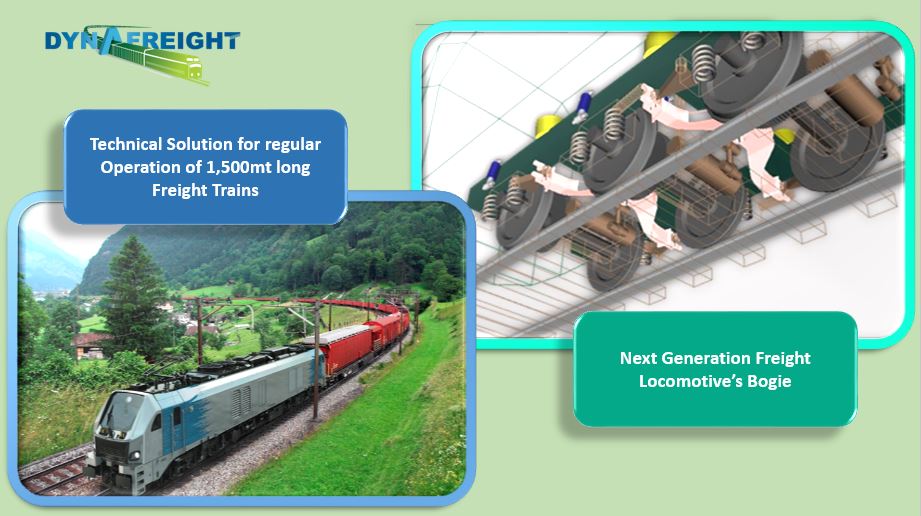 DYNAFREIGHT will contribute to this vision and overall concept of the EU rail freight transport by focusing on the next generation freight bogie locomotives and on preparing the path for regular operations of long freight trains (up to 1,500m), providing the first steps for the development of TD5.5 New Freight Propulsion Concepts within Shift2Rail IP5. The innovations in the two technical work packages proposed in DYNAFREIGHT are linked in the sense that the outcomes will be combined within Shift2Rail IP5 to bring a benefit at rail freight system level.