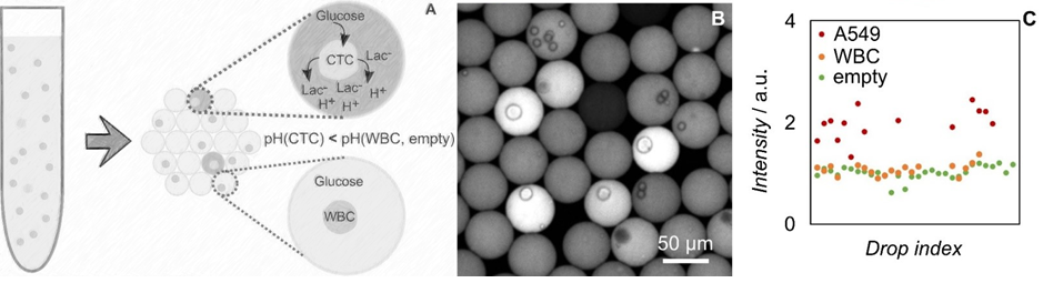 The objective of this project has been to investigate the economic feasibility of the proposed innovation and the preparation of a business plan to develop a new in vitro diagnostic test in order to detect cancer cells in the blood, help the clinician in the selection of the best therapy and give a rapid and robust feedback to monitor the effectiveness of therapy. The method makes use of the fact that tumor cells exhibit a different metabolism, which makes them secrete significantly higher amounts of lactate (lactic acid) and other acidic products than normal cells. This approach, that is linked to the gold standard for the detection of malignancy in tissues (PET, positron emission tomography), has never taken into account at the single cell level. The proposed technology screens for individual cells in a blood sample and can determine, by measuring the degree of acidity, if a cell is abnormal (tumoral). The cells can then be isolated and extracted for further analysis (such as immunostaining, detection of genetic mutations or DNA-RNA sequencing for the detection of clinically relevant features), thus greatly improving the diagnosis, care and treatment of cancer, which leads to a higher quality of life for the patient, with fewer unnecessary surgeries, personalized diagnosis and treatment, and better understanding of aftercare and development of the disease after treatment. Also, the living tumor cells may be analyzed, which leads to more insight into the stage of the disease, and the development of cancer as a disease in general.