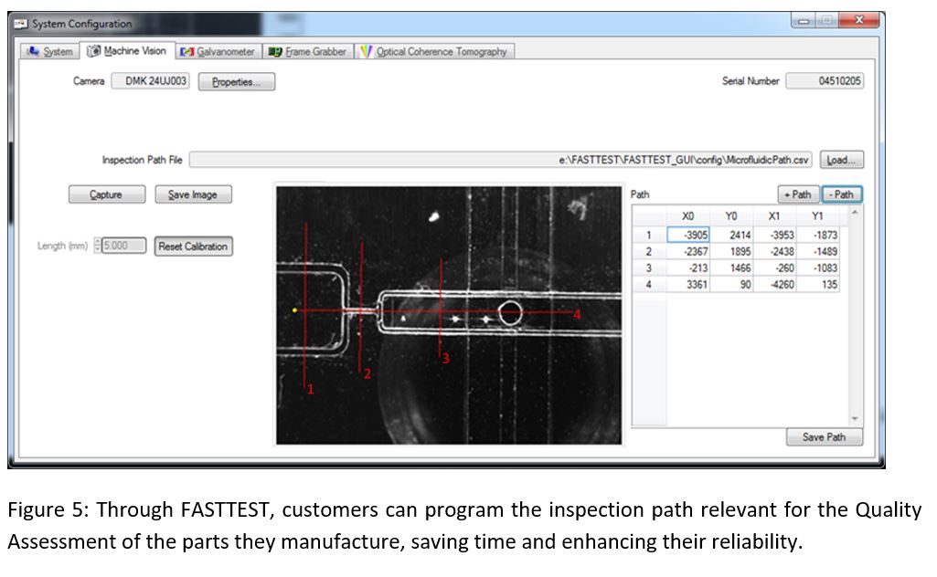 The system allows a preselection of the inspection zones of interest. This together with a well optimized data acquisition rate, allows the inspection of parts at rates matching production rates, enabling systematic inspection of the entire output of the production line rather than randomly selected samples. This thorough quality control reduces waste and increases quality in sectors such as point of care medicine where disposable microfluidics are used.