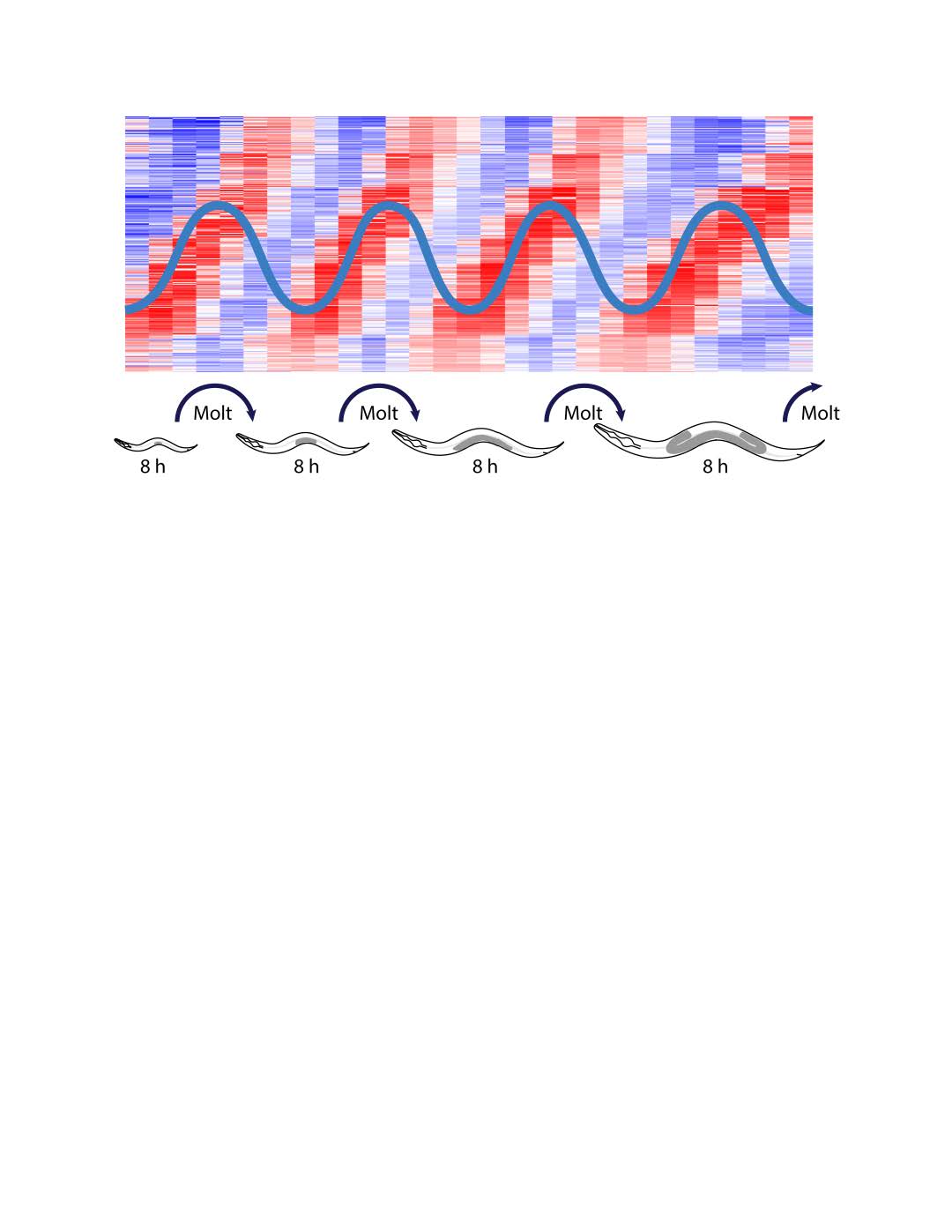 Organismal development requires proper temporal coordination of events such as cell differentiation, proliferation, and morphogenesis. The mechanisms that control temporal patterning remain poorly understood. In particular, we know little of the cyclical timers, or ‘clocks’, that control recurring events. Examples of repetitive developmental processes are the formation of the vertebrate spine from repetitive segments, or the molting of roundworms, which occurs regularly at the end of larval stages. Furthermore, it is unknown how clocks are started up and arrested, e.g. to ensure an appropriate number of cyclical repeats. We aim to elucidate the components, wiring, and properties of a prototypic developmental clock by studying developmental timing in the roundworm C. elegans. We build on our recent discovery that ≥20% of the worm’s transcriptome oscillates during larval development. Our aims are i) to identify components of this clock, ii) to gain insight into the system’s architecture and properties, and iii) to understand the initiation and termination of clock cycles. As developmental timing genes and rhythmic gene expression are also important for controlling stem cell fates, we foresee that the results gained will additionally reveal regulatory mechanisms of stem cells, thus advancing our fundamental understanding of animal development and future applications in regenerative medicine.
