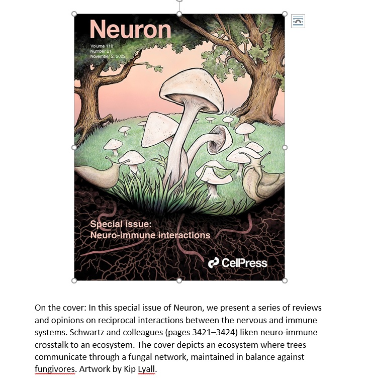 4. Further establish the importance of the field, which was initiated by my team in 1998, as summarized by a Nature journalist in June 2022 ("The immune cells are guardians of the brain", (https://www.ncbi.nlm.nih.gov/pubmed/35650361(opens in new window)) and in the special issue of Neuron, in which I proposed viewing brain-immunity as an ecosystem ( https://www.ncbi.nlm.nih.gov/pubmed/36150394(opens in new window)).