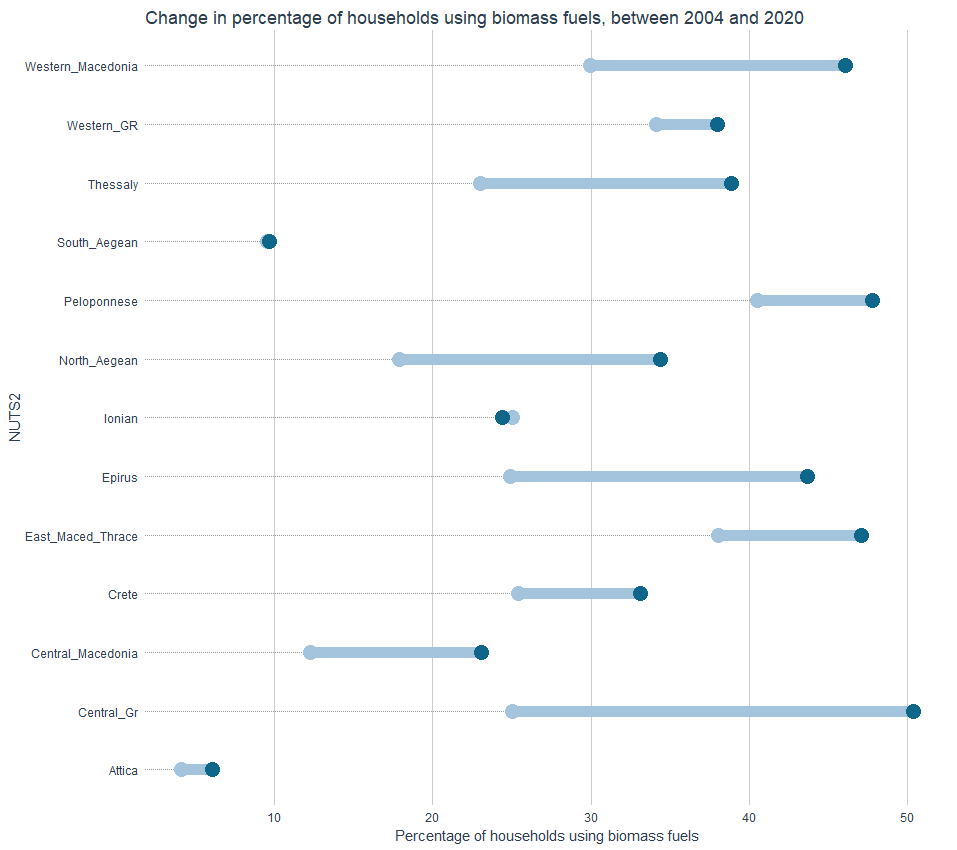 1) Collection and analysis of micro-data from the Hellenic Statistical National Autority. In particular, the data come from the Household Budget Survey, covering a number of years, from 2004 to 2020. The data contain information on household consumption of energy, including the most frequently used forest solid fuels: fuelwood, pellets, olive kernel and briquets. They also include socioeconomic, demographic and housing data. The data coverage is the whole country by NUTS2 regions. Coupled with this, the project has collected winter-temperature data for the years 2004-2020 from the national meteorological service.