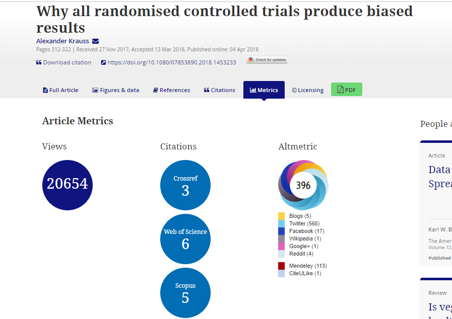 In terms of news coverage for the published article (article 1) ‘Why all randomised controlled trials produce biased results’: