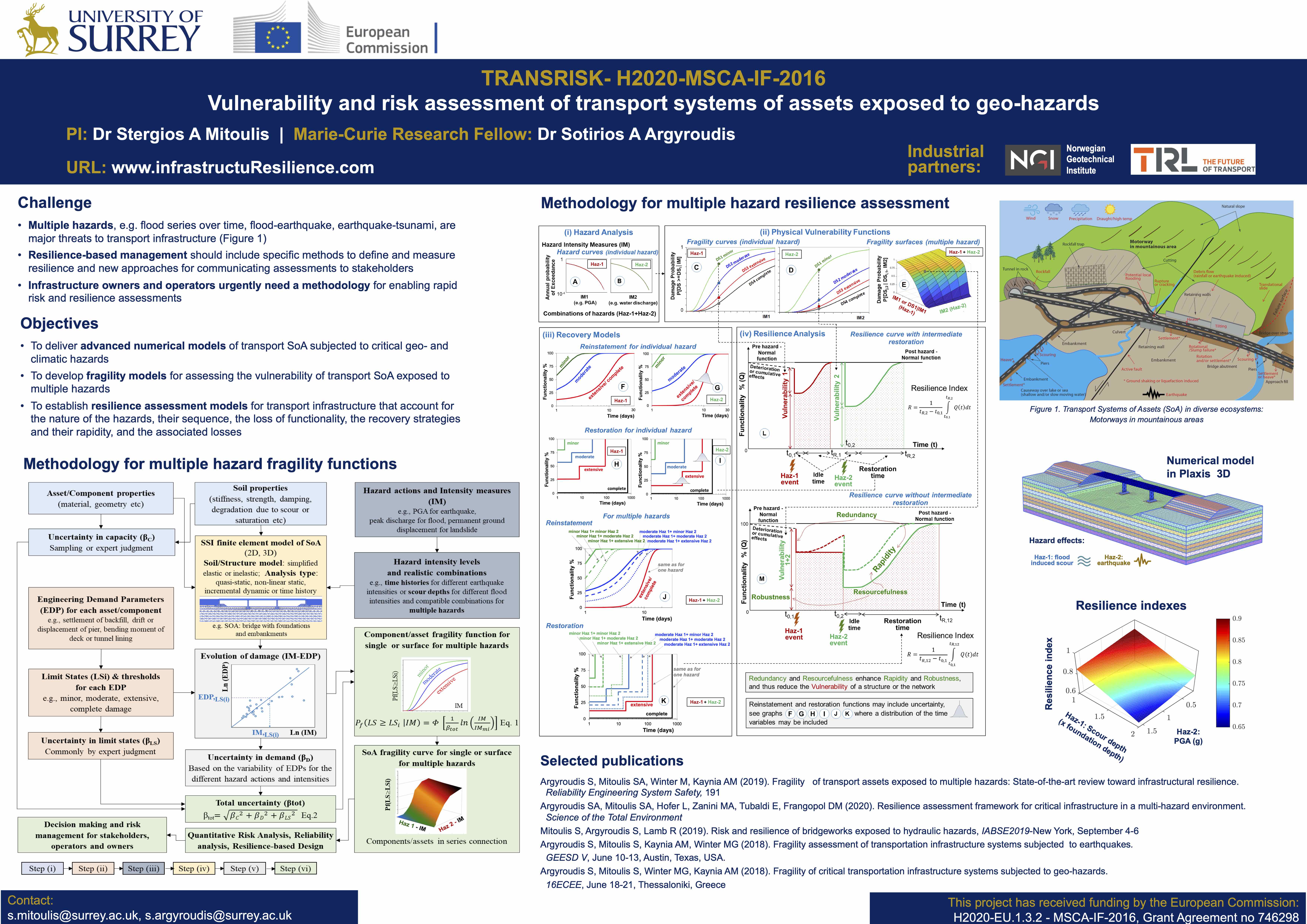 The diverse yet complementary expertise of the Fellow (Dr S Argyroudis), the Supervisor (Dr SA Mitoulis), the Host Organisation (University of Surrey), and the Partner Organisations (Transport Research Laboratory/ Prof MG Winter, TRL and the Norwegian Geotechnical Institute/ Prof AM Kaynia, NGI) worked perfectly and delivered way beyond the initially expected outcome of the TRANSRISK project. This multi-sectoral nature of the project also included interaction with transportation authorities, stakeholders and industrialists (e.g. ARUP, Highways England, Network Rail, JBA Trust) to produce meaningful and practical research results.