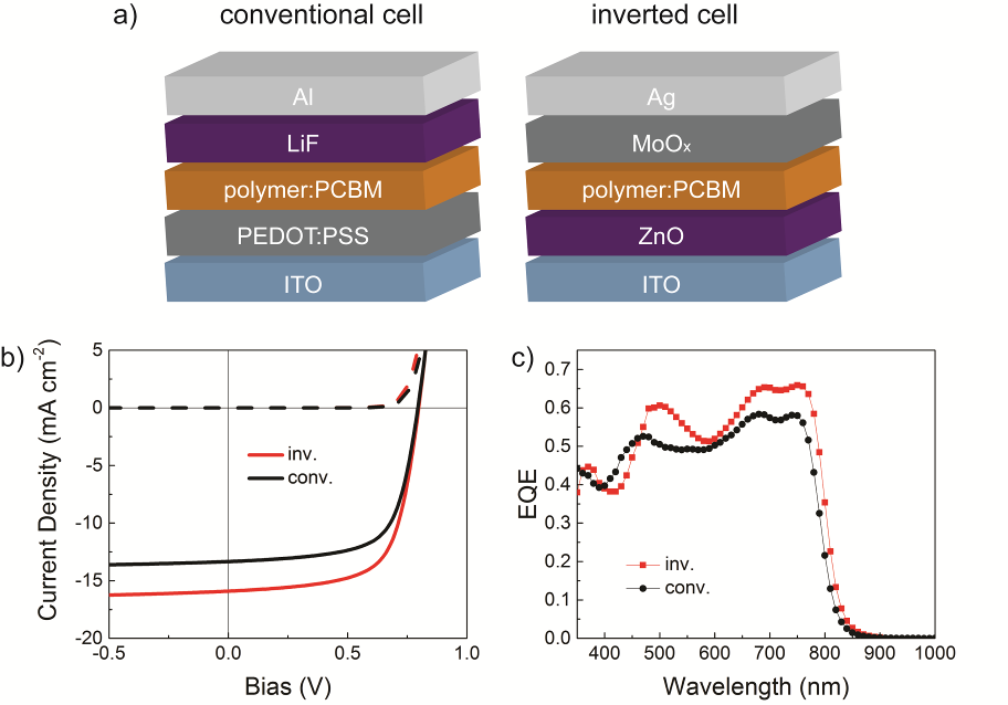 In the field of OPVs, the impact of device polarity on the performance of polymer-fullerene solar cells was demonstrated (Adv. Energy. Mater.; as the first author). Further morphological optimization, with the combination of retroreflective foil, afforded a power conversion efficiency of 9.6%, among the highest for DPP-based polymer solar cells.