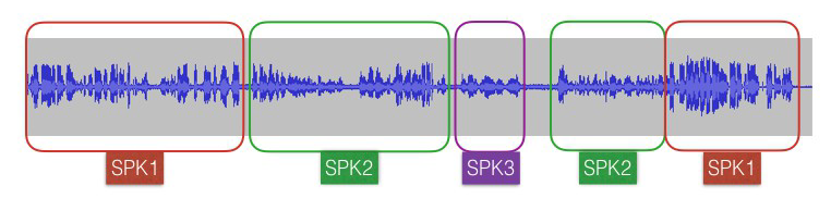 Although being apparently easy for humans, diarization is a highly challenging task for machines, as it deals with the complex task of Speaker Recognition, it needs to find the (unknown) number of speakers in the utterance, it has to do segmentation of speech into speaker turns (finding boundaries between speakers) and needs to deal with overlapped speech (cross-talk).