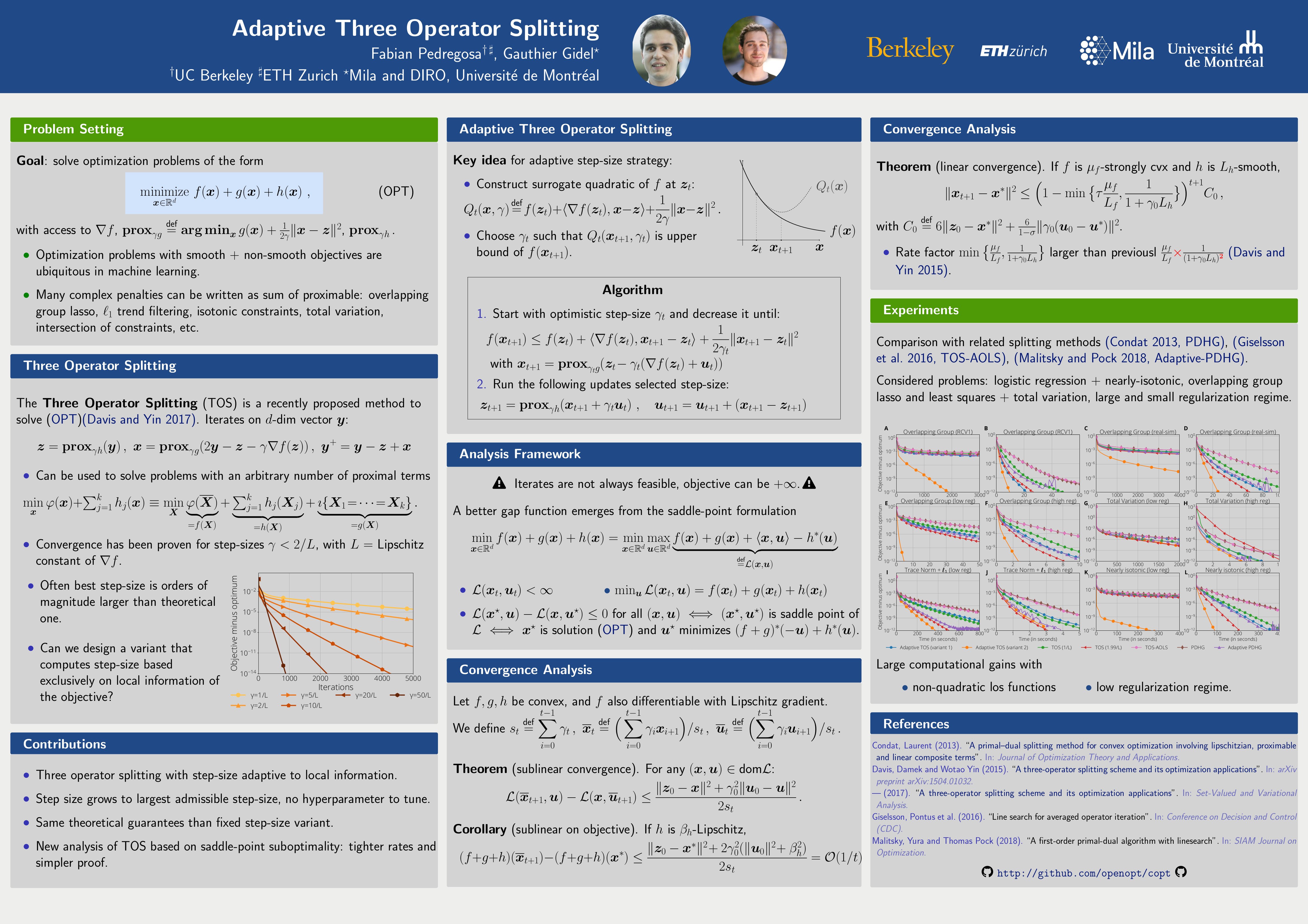 [1] Pedregosa, F. & Gidel, G.. (2018). Adaptive Three Operator Splitting. Proceedings of the 35th International Conference on Machine Learning (ICML), in PMLR 80 http://proceedings.mlr.press/v80/pedregosa18a.html(opens in new window)