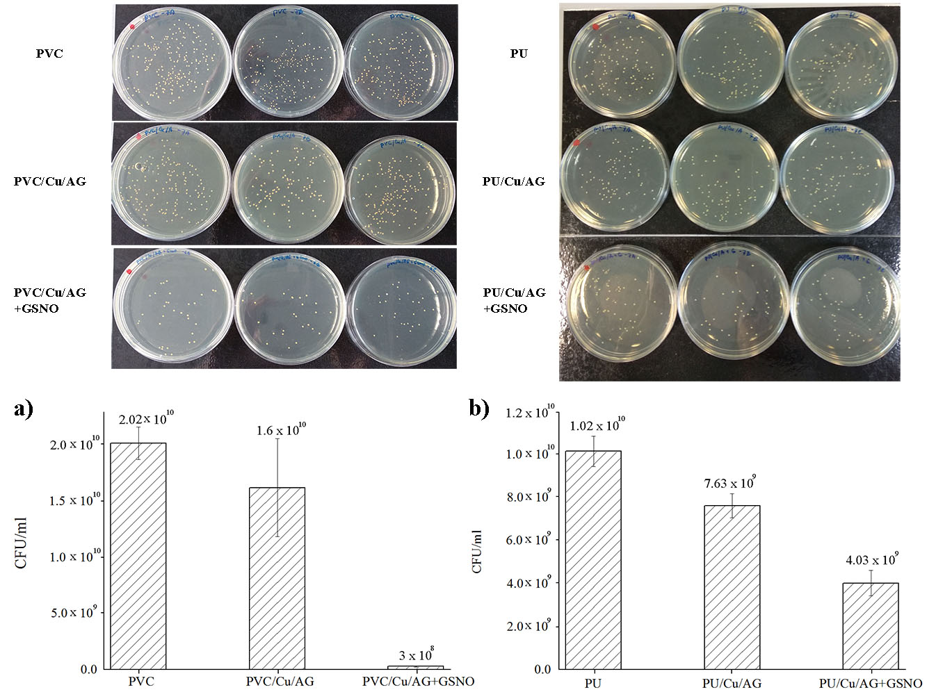 Collaborative work with Teer Coatings resulted in development of smooth metal/mixed metal coatings on synthetic polymers. These coatings are the highest quality reagent-fee coatings for polymers which is “green way” alternative technology to produce such coatings with significant reduction in waste generation. All obtained Cu-coated polymers were able to generate nitric oxide.