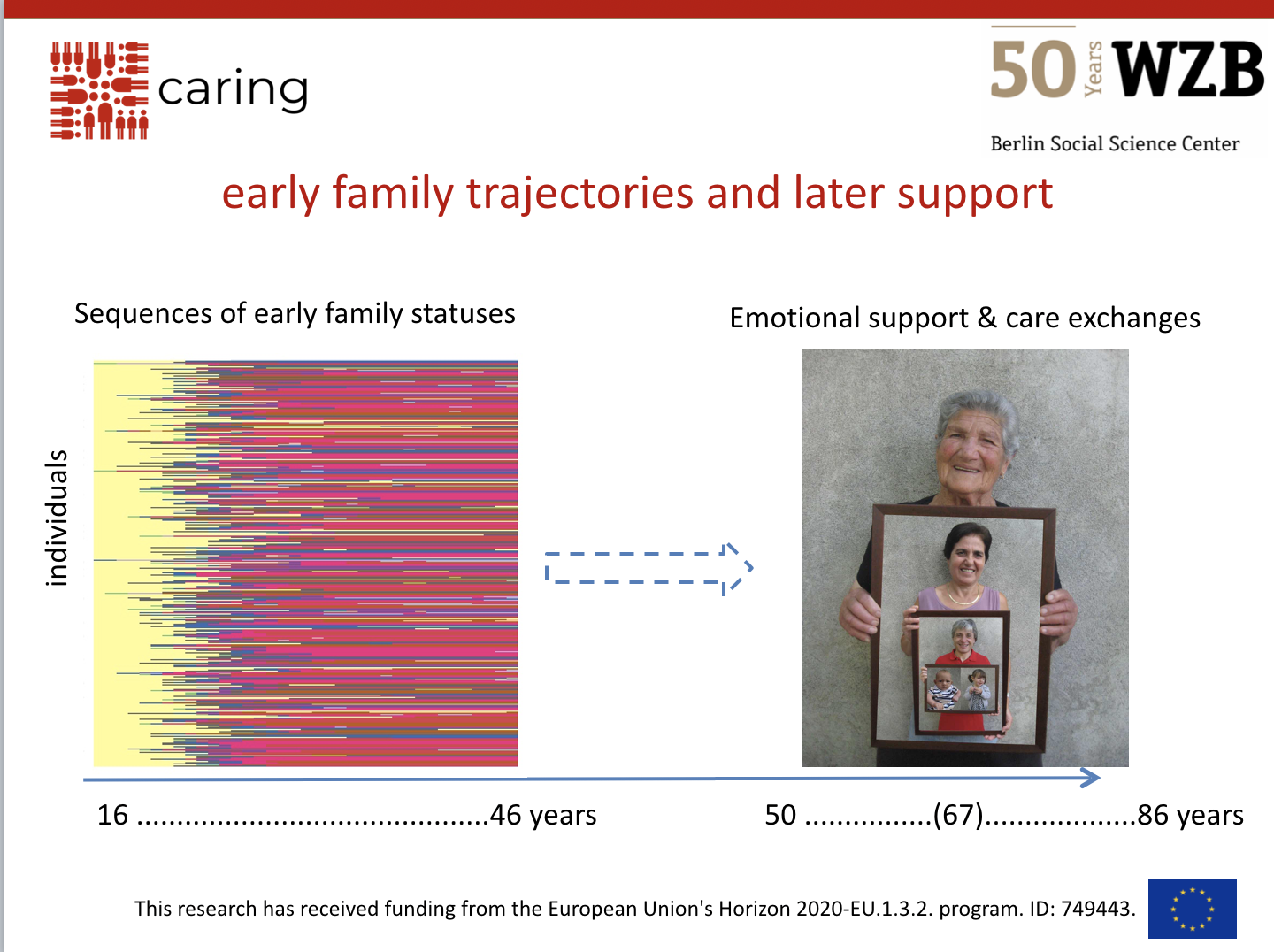 Life choices in the process of family formation may impact the availability of care and support at older age. Marrying, having children, divorcing, and remarrying are interconnected events that can establish or break core network relations and impact on care availability in later age. The project examined whether earlier family trajectories predicted emotional and practical support received and given at older ages.