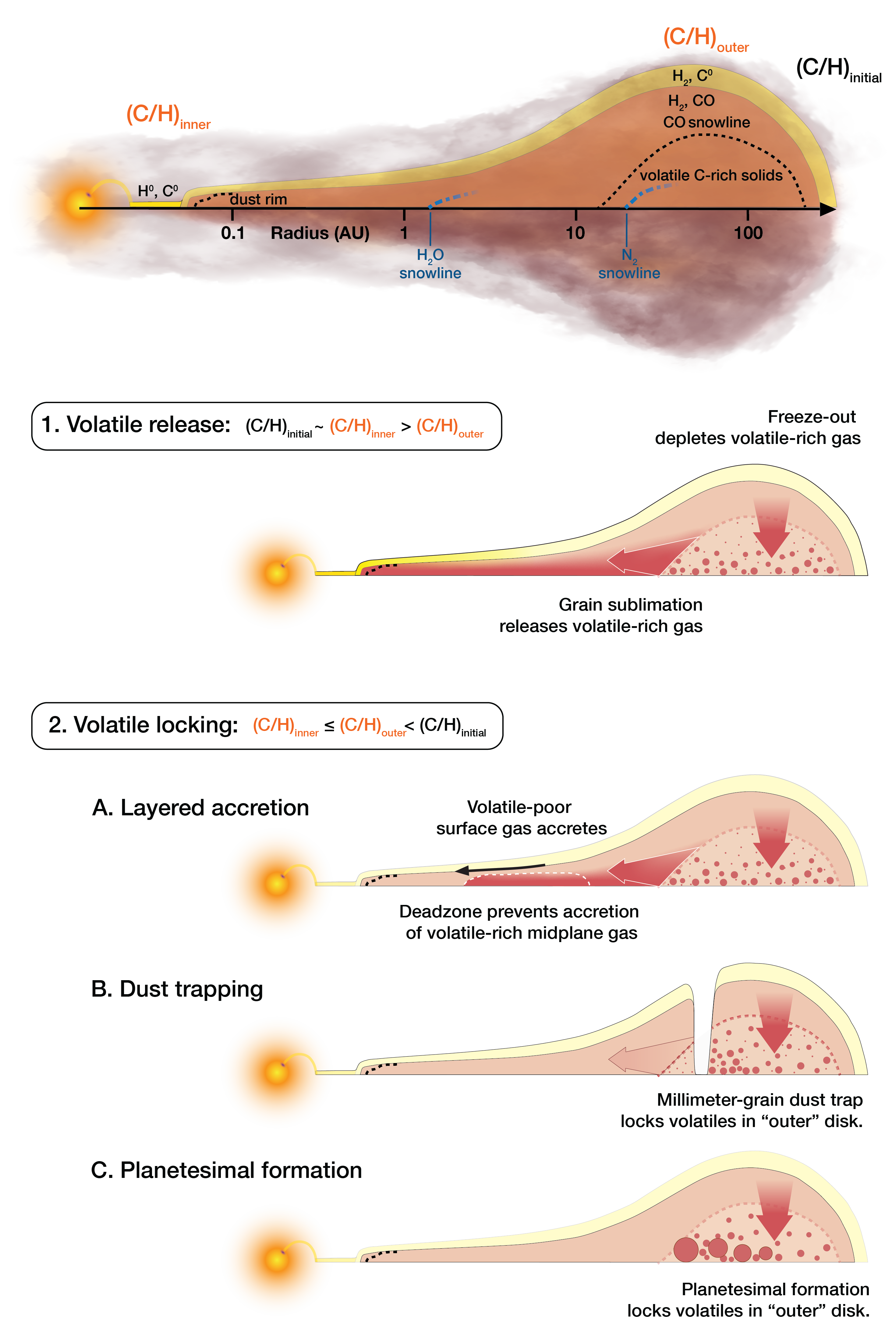 The first overall objective of the program was to measure the gas phase composition in a range of protoplanetary disks at the radial distance from the central star analogous to the location of most observed extrasolar hot gas giant planet, to determine what these planets' atmospheric composition would be if they formed in situ. A second goal was to use the deficit of certain elements in the gas in this region of protoplanetary disks to infer the solid rocky and icy composition of forming planetesimals in these disks. We met these objectives successfully. We have concluded that the gas in the inner regions of some protoplanetary disks is depleted in ice-forming elements, suggesting that hot gas giants that form in situ should have relatively little of these elements in their atmospheres (McClure 2019; McClure & Dominik, submitted & under revision). We also found that rock-bearing elements like iron, silicon, and calcium were depleted in one disk by ~100 times more than the ice-forming elements, suggesting that asteroid-like planetesimal formation was underway in these disks. We also determined that the first steps of forming the planetesimal cores must happen already by ~100,000 years after the protostar forms (McClure, Dominik, & Kama, drafting).