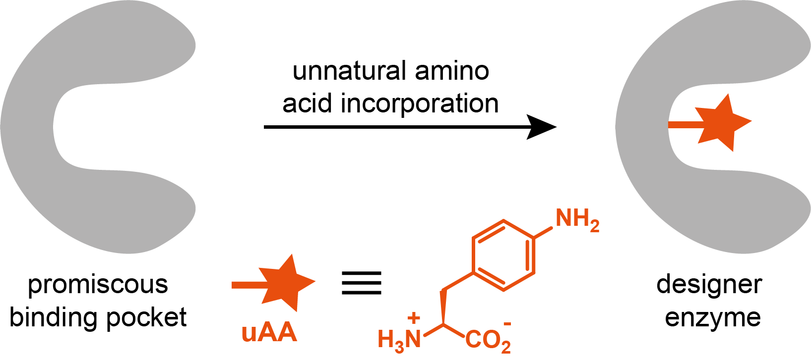 In an effort to expand the catalytic repertoire and improve these novel reactivities by directed evolution techniques, we incorporated unnatural amino acids featuring uniquely reactive functional groups in the hydrophobic pore of LmrR, an MDR found in Lactococcus lactis. By genetically incorporating an aniline side chain, we identified a designer enzyme, LmrR_V15pAF, that was able to catalyze a model hydrazone formation with rate accelerations orders of magnitude higher than aniline in solution. In another line of research, we evaluated the performance of various palladium complexes for cross coupling reactions inside the binding pockets of MDRs, yet failed to identify catalytically active hybrid catalysts.