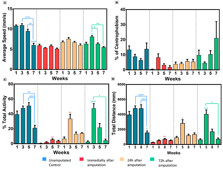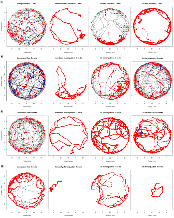 In all age stages, the amputation procedure induced an immediate decrease of locomotor activity, as well as decrease of the instantaneous speed. Thus, it’s clearly that flies can readjust their motor representation in order to adapt to new biomechanical challenge.