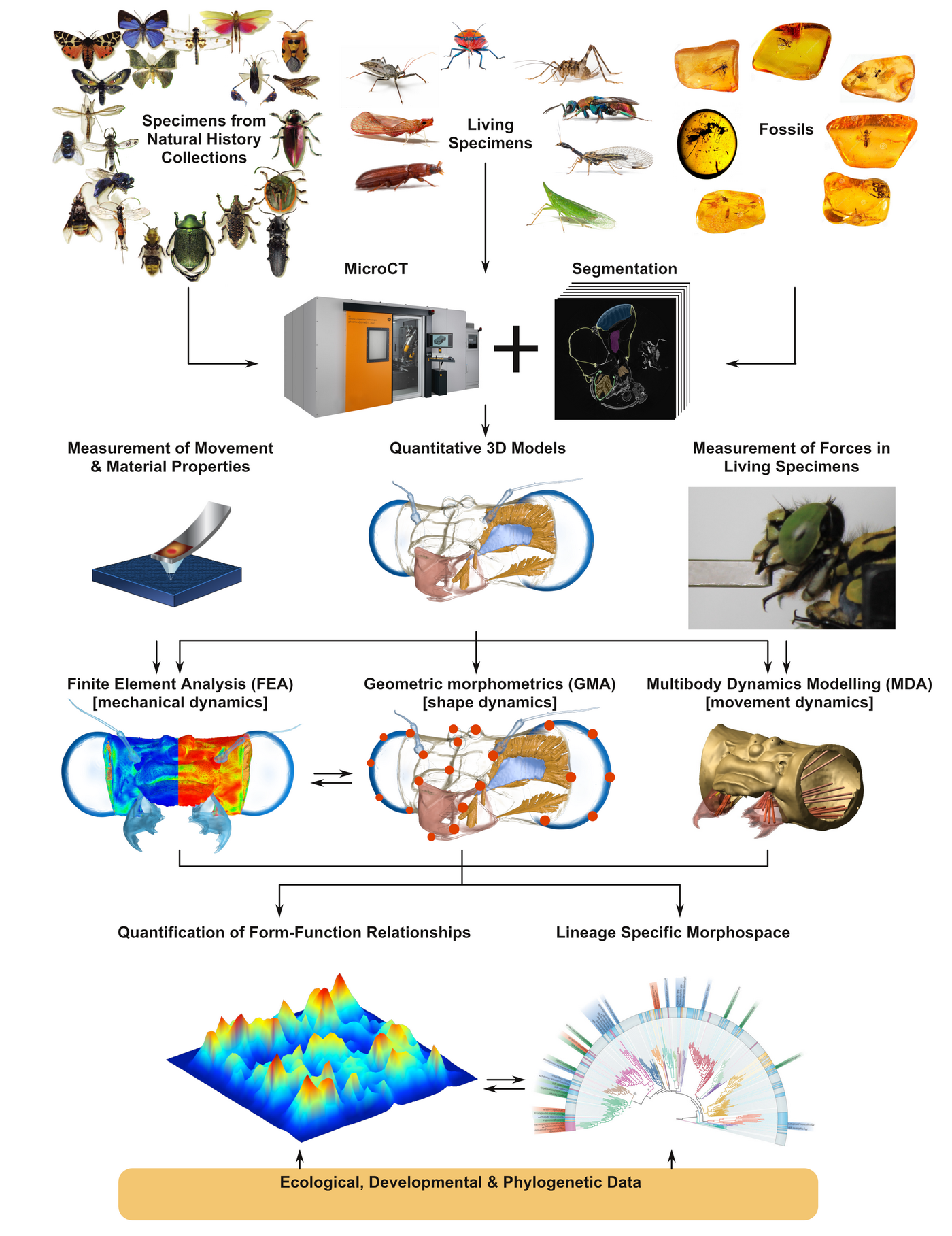 We have published ten papers regarding different aspects of head shape morphology and evolution in arthropods with a particular focus on insects. Two papers were published regarding the methodological developments mentioned above, while we published two other papers about the head and gill biomechanics of fishes which indeed are follow-up studies stemming from our core research agenda about insect head and mouthpart biomechanics. Finally, we participated in another three papers about different aspects of insect biomechanics and phylogeny.