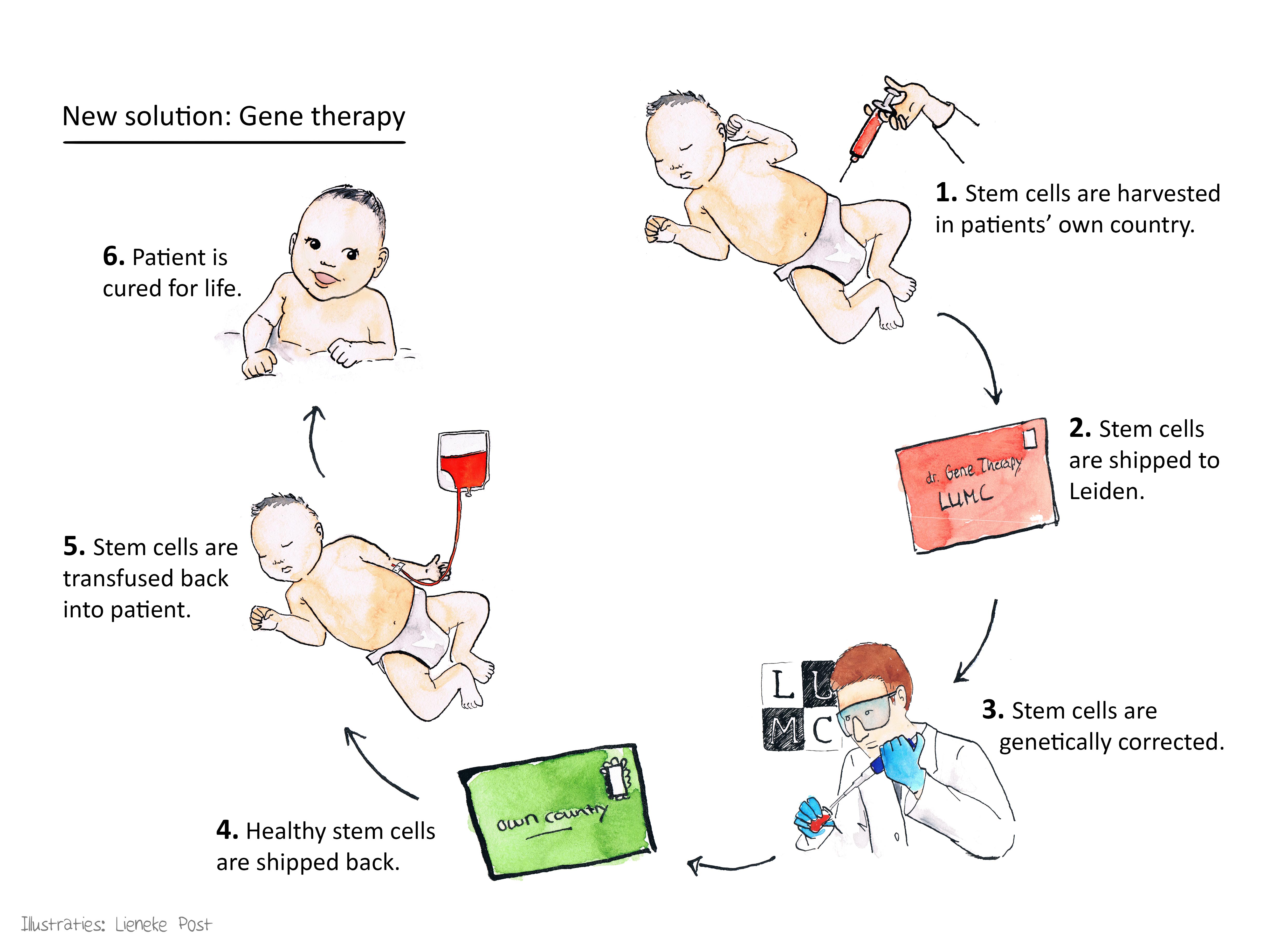 If Recomb is indeed as successful as expected, many advantageous impacts are envisaged on patients’ lives, society and economy, as well as on scientific and clinical practice.Most importantly, it is anticipated to provide treatment for RAG1-SCID patients with higher efficacy and safety. Moreover, it is expected to be more comfortable and cost-effective for the patients. Additionally, due to cryopreservation of the product, its distribution will be facilitated to several centres, with the possibility to reach any affected child in the EU. This new model, including highly specialised centres with the expertise to receive, transduce and return cells to remote clinical units in the EU, will likely become a global standard. Besides, GT is expected to significantly reduce healthcare costs for the treatment of RAG-SCID in the long term and potentially many others. Given the success with X-SCID and ADA-SCID, GT will likely become the treatment of choice for the majority of SCID patients, offering an effective treatment option for over 70% of all genetically defined SCID patients in Europe and beyond. It is becoming more important to provide such therapy as the number of diagnosed RAG-SCID patients is expected to significantly increase due to newborn screening studies. Along with these ambitions, the consortium expects that the obtained knowledge can also be applied to other diseases that can be treated with autologous stem cell-based GT, i.e. SCIDs, immune disorders, lysosomal storage diseases and haemoglobinopathies.The successful treatment of the first patient provides clinical proof of concept for RECOMB’s approach to treating RAG1-SCID and a promising perspective towards the expectations.