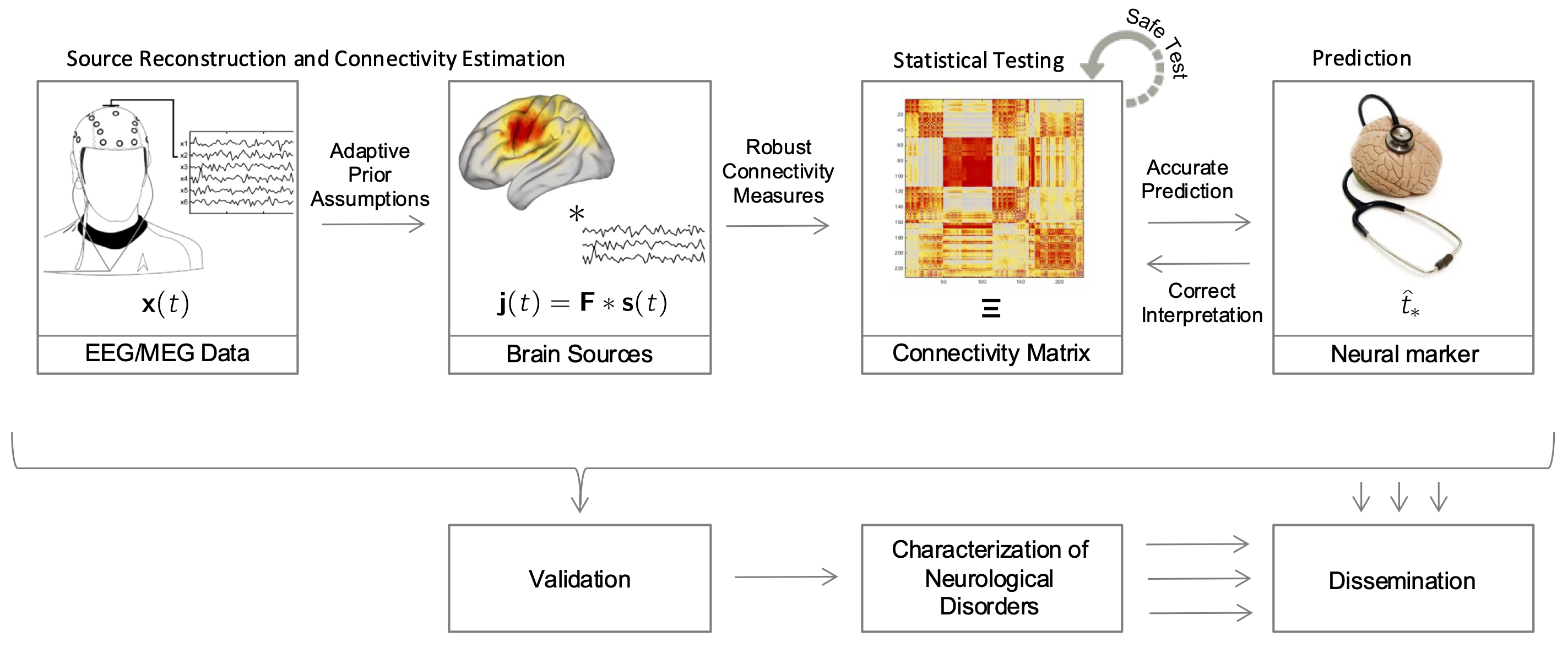 In this context, the goals of TrueBrainConnect were two-fold. First, the project aimed to characterize impaired brain communication in aging-associated neurological disorders using non-invasive electromagneticrecordings. Second, in order to achieve this, a novel methodology for functional brain connectivity analysis needed to be developed that overcomes limitations of existing approaches. This led to the following concrete objectives pursued by the project.