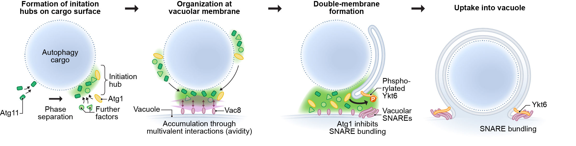 The goal of this project was to rebuild autophagy from the bottom up, using purified components, cell fractions and synthetic systems. By combining cell biology, biochemistry, and synthetic biology, we aimed to reveal how the key kinase Atg1/ULK1 controls autophagy, how autophagosomes form and fuse, and how proteins are organized in space and time to ensure successful recycling.