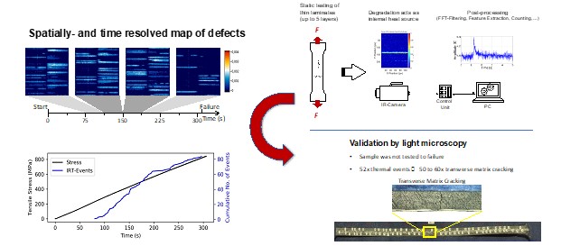 The multi-stage process from raw materials to 3R based composite laminates with their multifunctionality was evaluated at Lab-Scale and Full-Scale (Fig. 3). The quality control included IR thermography, phased array ultrasound, optical microscopy and computed tomography. Characterization of morphologic, structural, functional properties and durability of multi-ply laminates under mechanical & environmental fatigue provided feedback for material- and process optimization. Standardized, established methods, as well as specifically adapted methods were applied and captured the full application potential of the TEG composites.