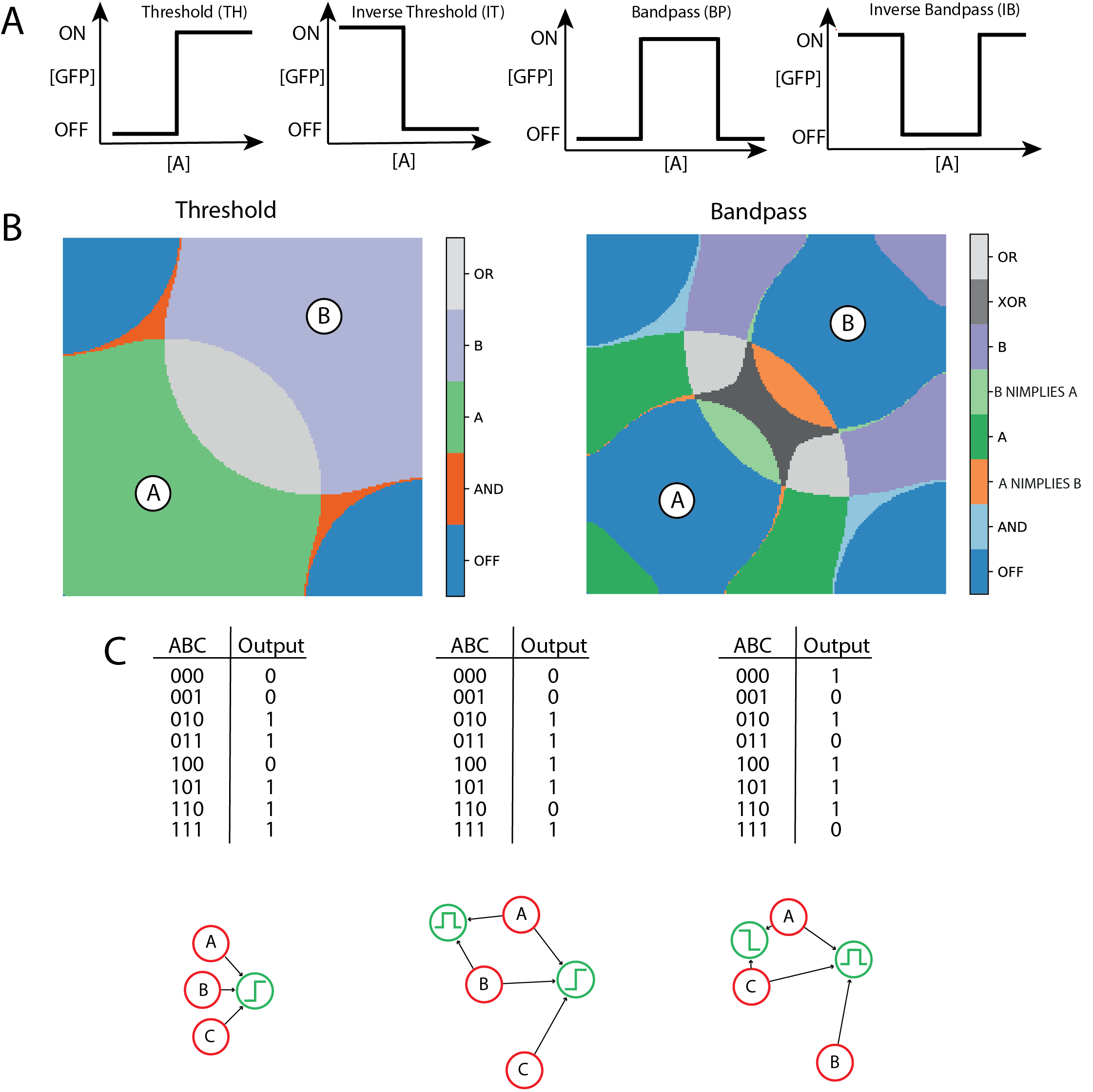 • Assemble larger computational networks by combining multiple colonies to perform complex, multi-input logic without further genetic modifications.
